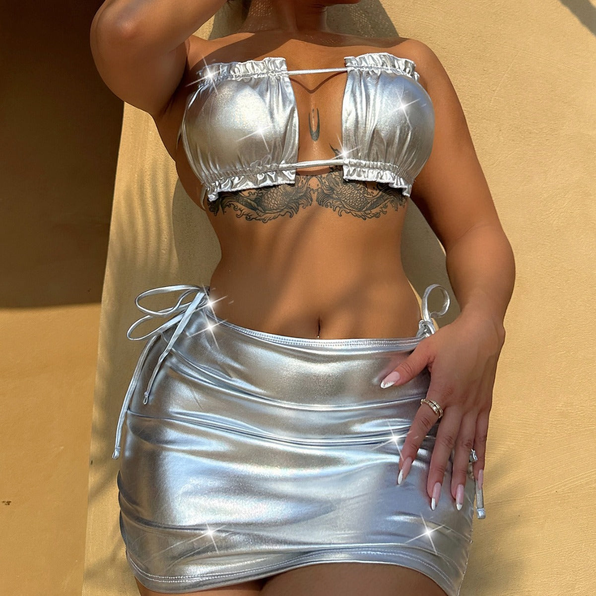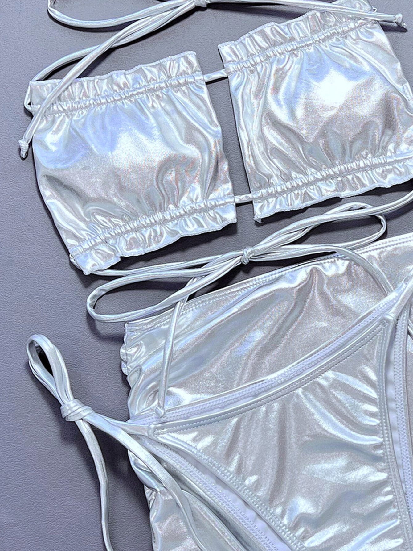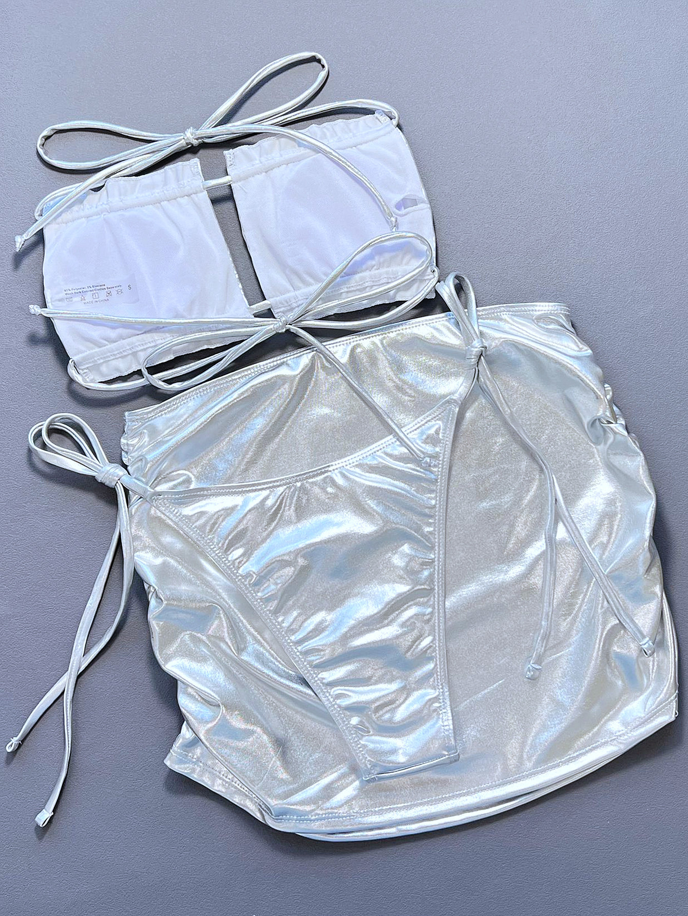 Women Three Piece Bikini Solid Color Sexy Women Split Swimsuit Triangle Bag Swimsuit