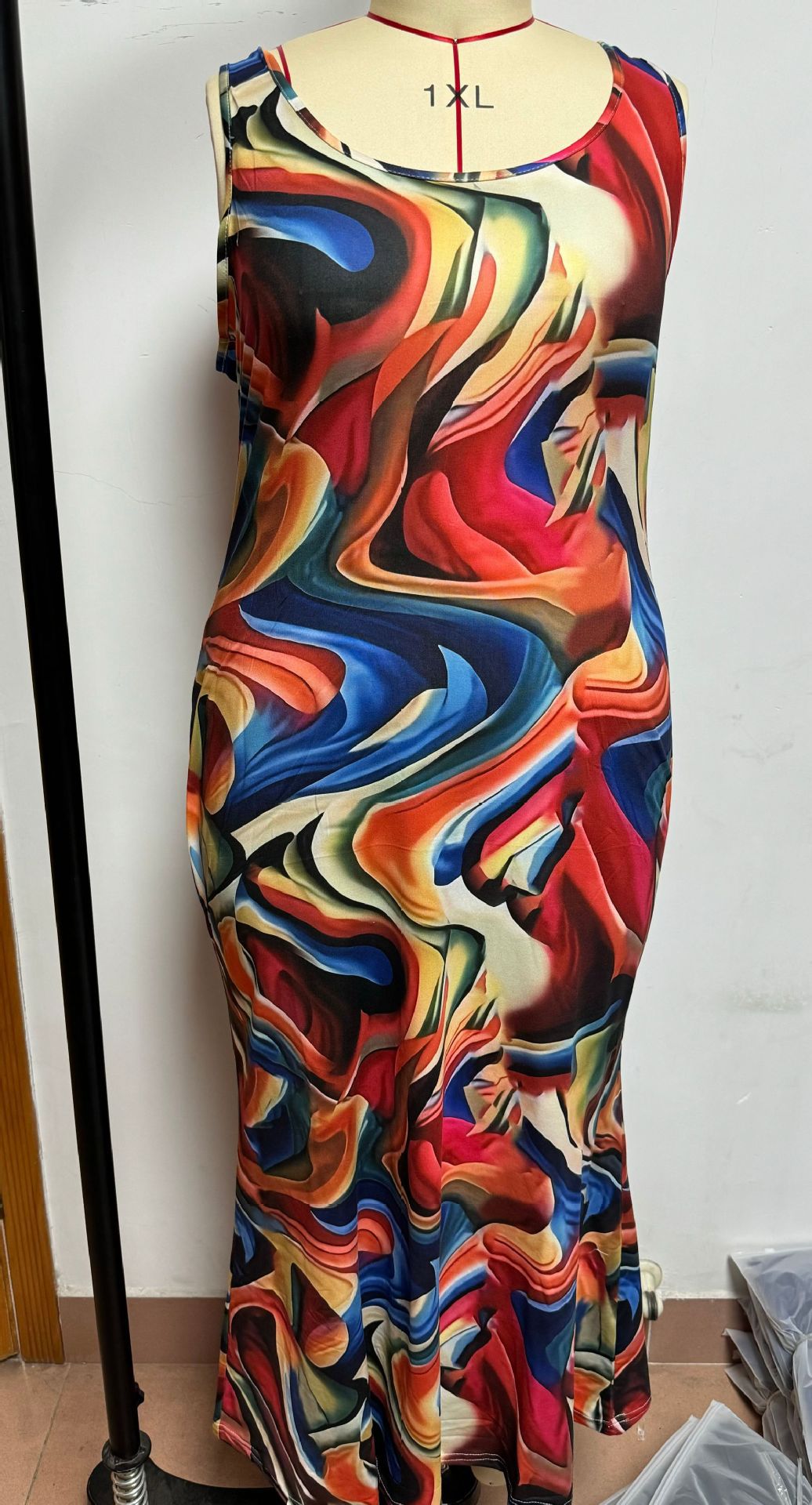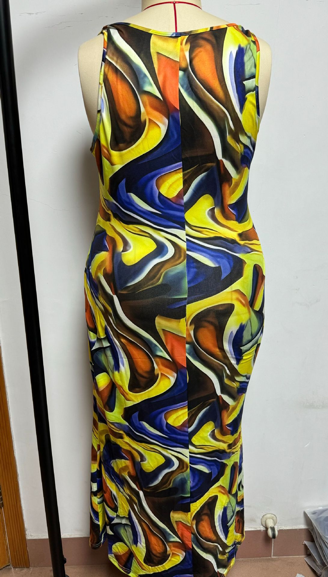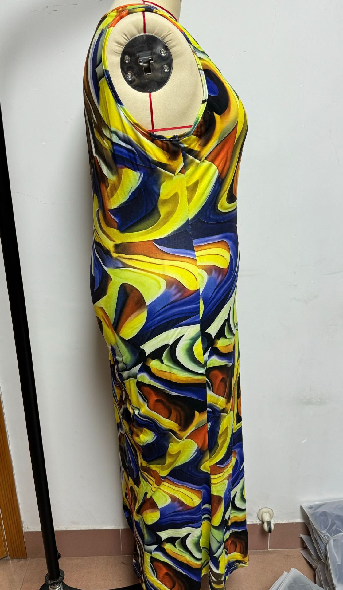 Women Trendy Temuw Women Clothing Printed Wave Pattern Maxi Dress
