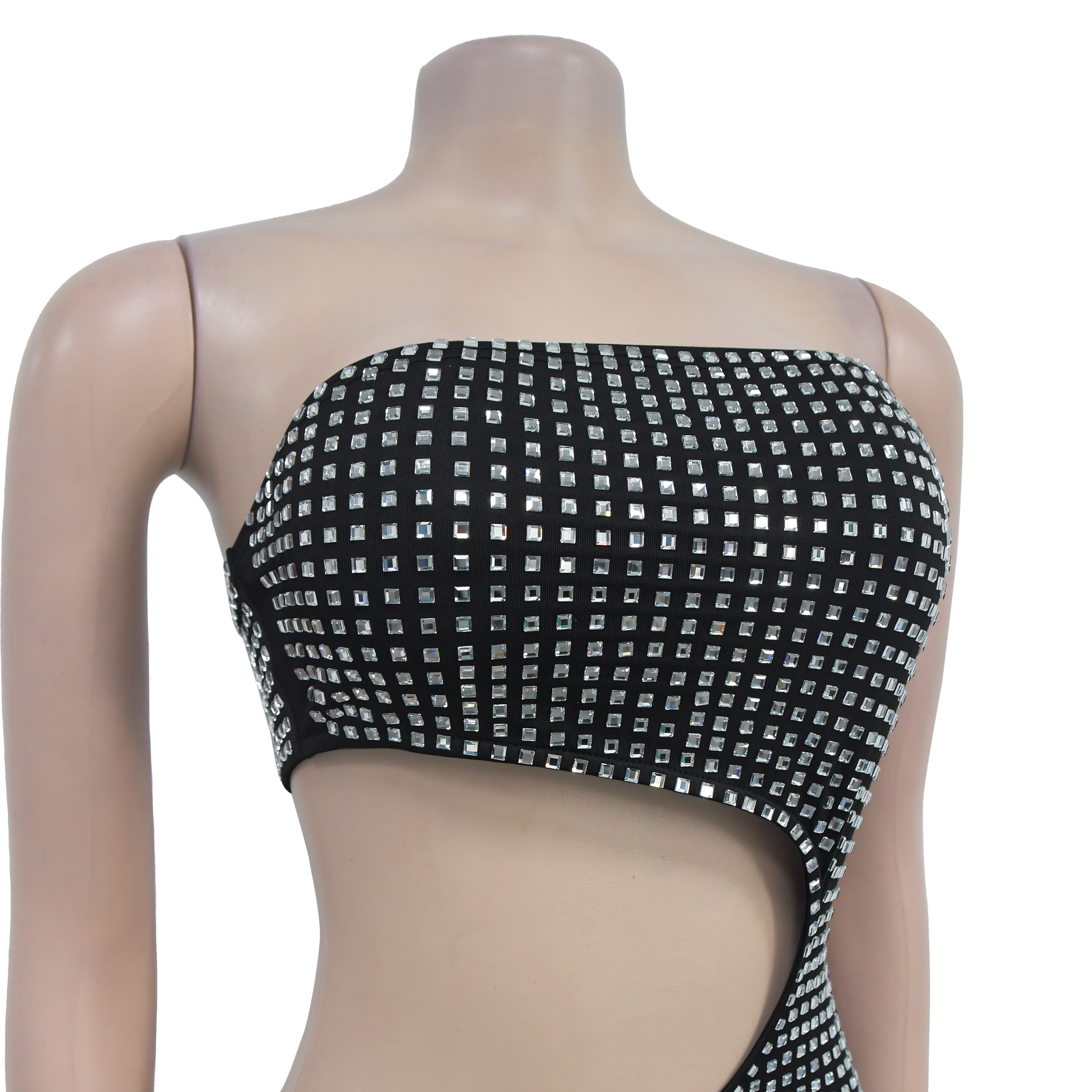 Element: Rhinestone,Asymmetric,Cutout,Split,Zipper