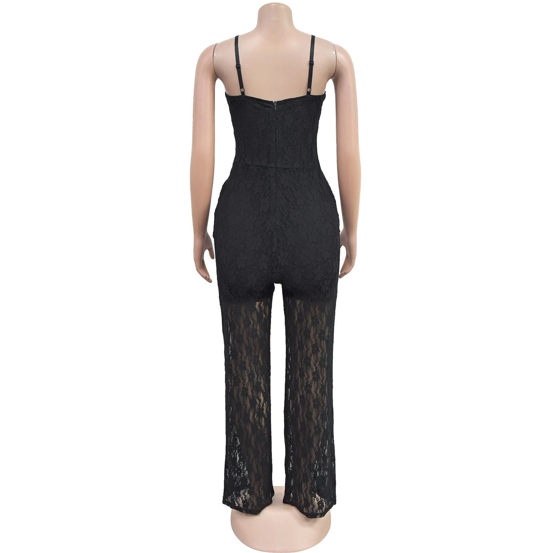 Women Wear Sexy Slim Lace Cutout Sling Jumpsuit