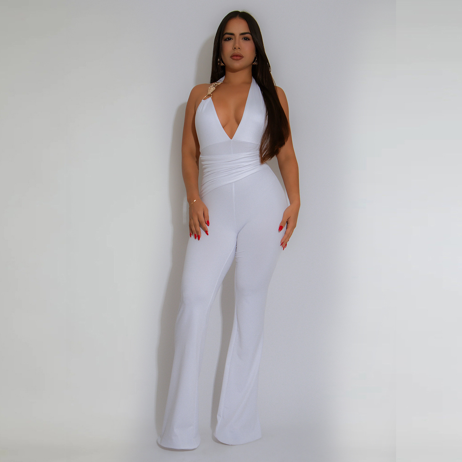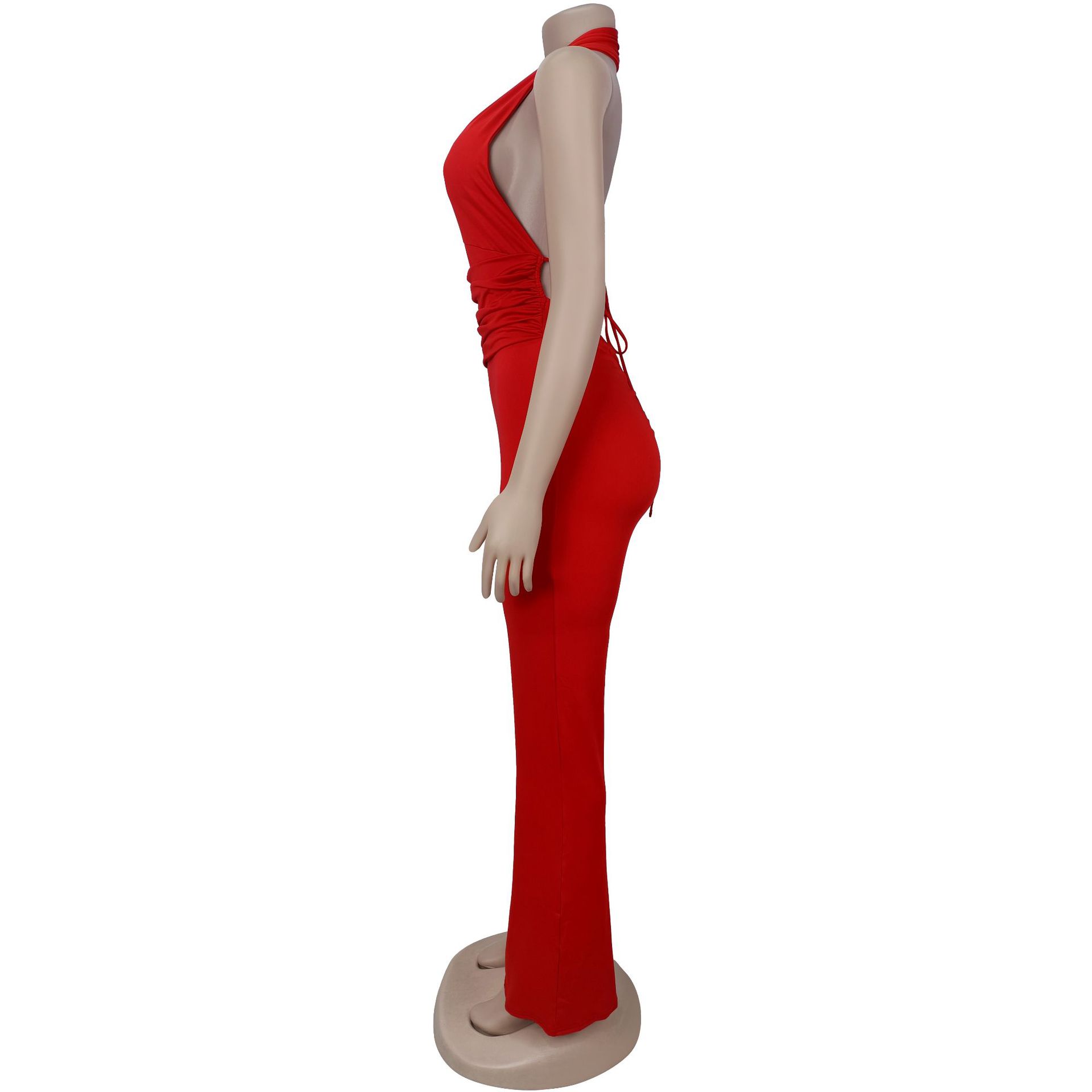 Women Wear Strap Sexy Deep V Plunge Halter Solid Color Jumpsuit