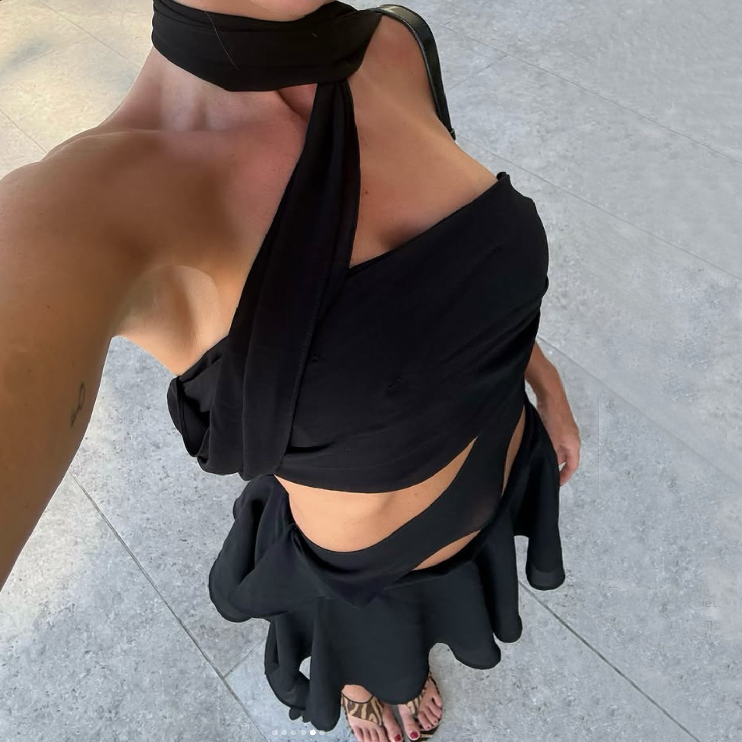 Women Wear Street Shooting Sexy Cutout Cropped Outfit Ribbon Halter Dress Women
