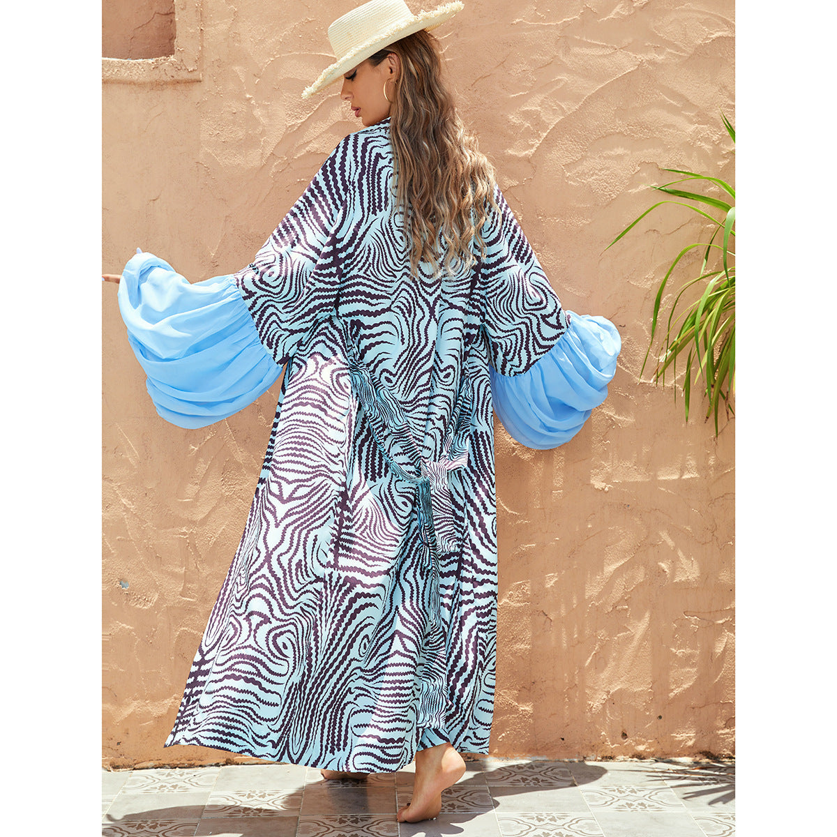 Zebra Striped Long Cardigan Bikini Cover-up Long Sleeve Blouse Beach