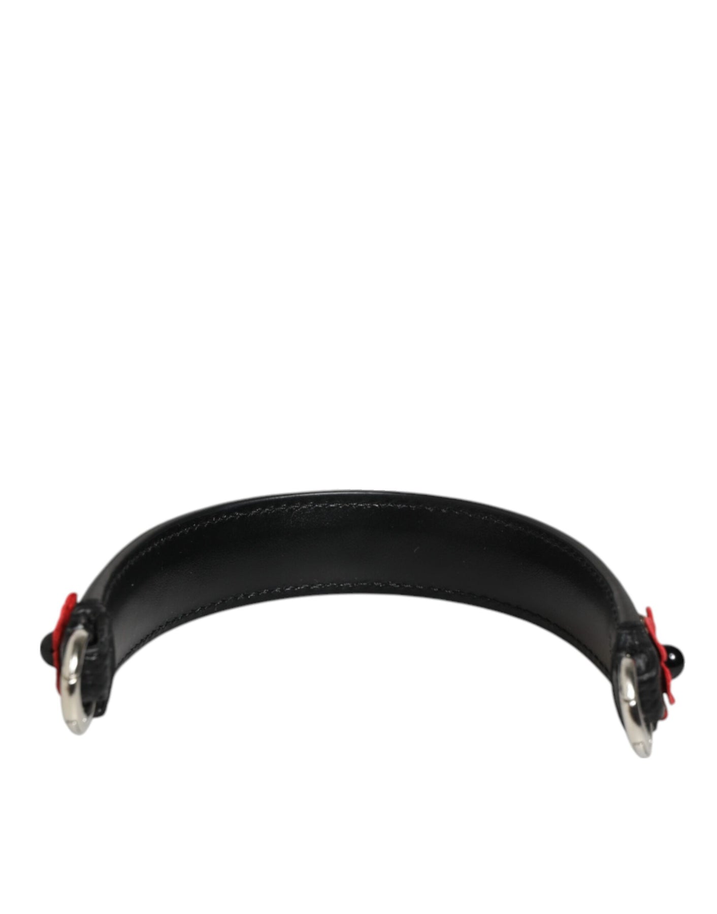 Dolce & Gabbana Black Embellished Leather Bag Handle Women Shoulder Strap