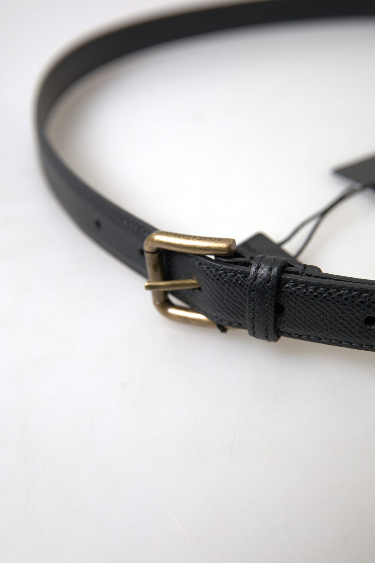 Dolce & Gabbana Black Leather Gold Metal Buckle Men Belt