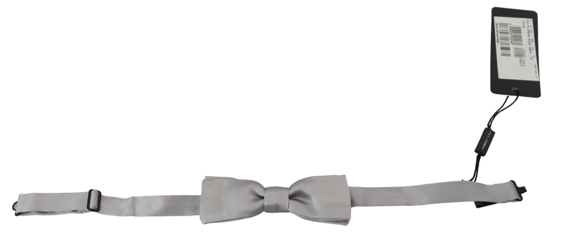 Dolce & Gabbana Gray Silk Adjustable Men Neck Papillon Bow Tie