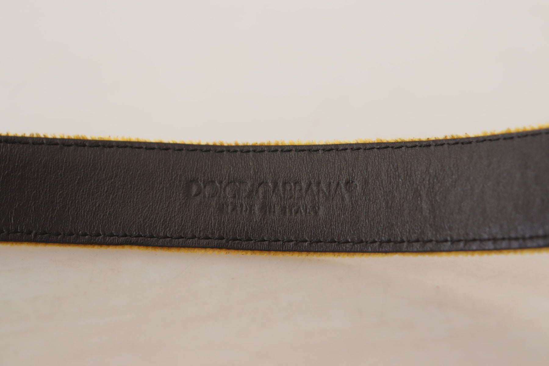 Dolce & Gabbana Mustard Velvet Gold Logo Engraved Metal Buckle Belt