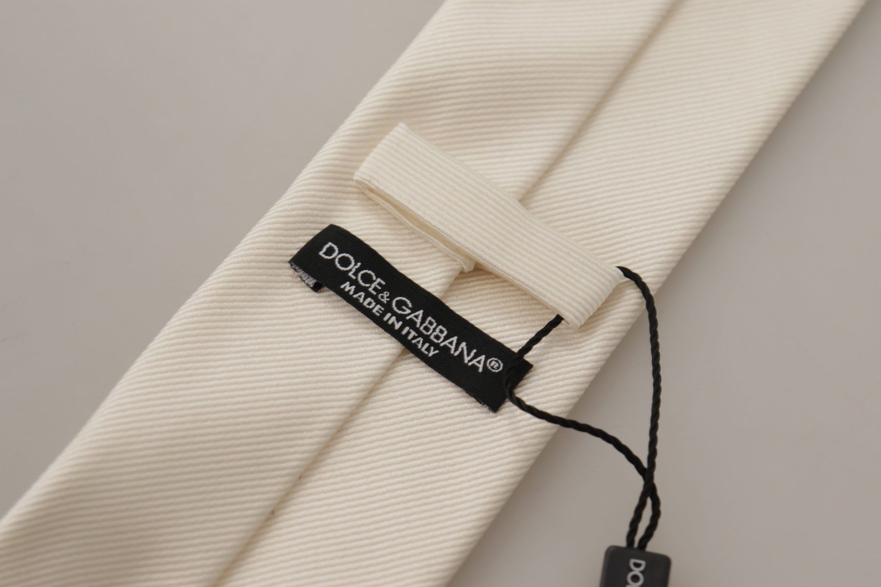 Dolce & Gabbana Off-White 100% Silk Slim Adjustable  Accessory Necktie