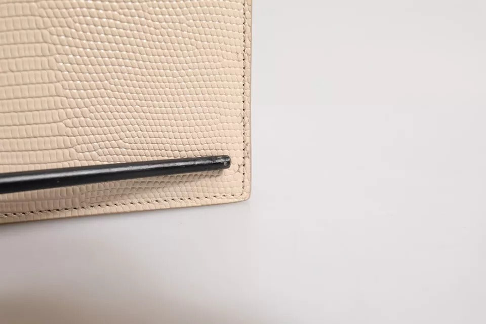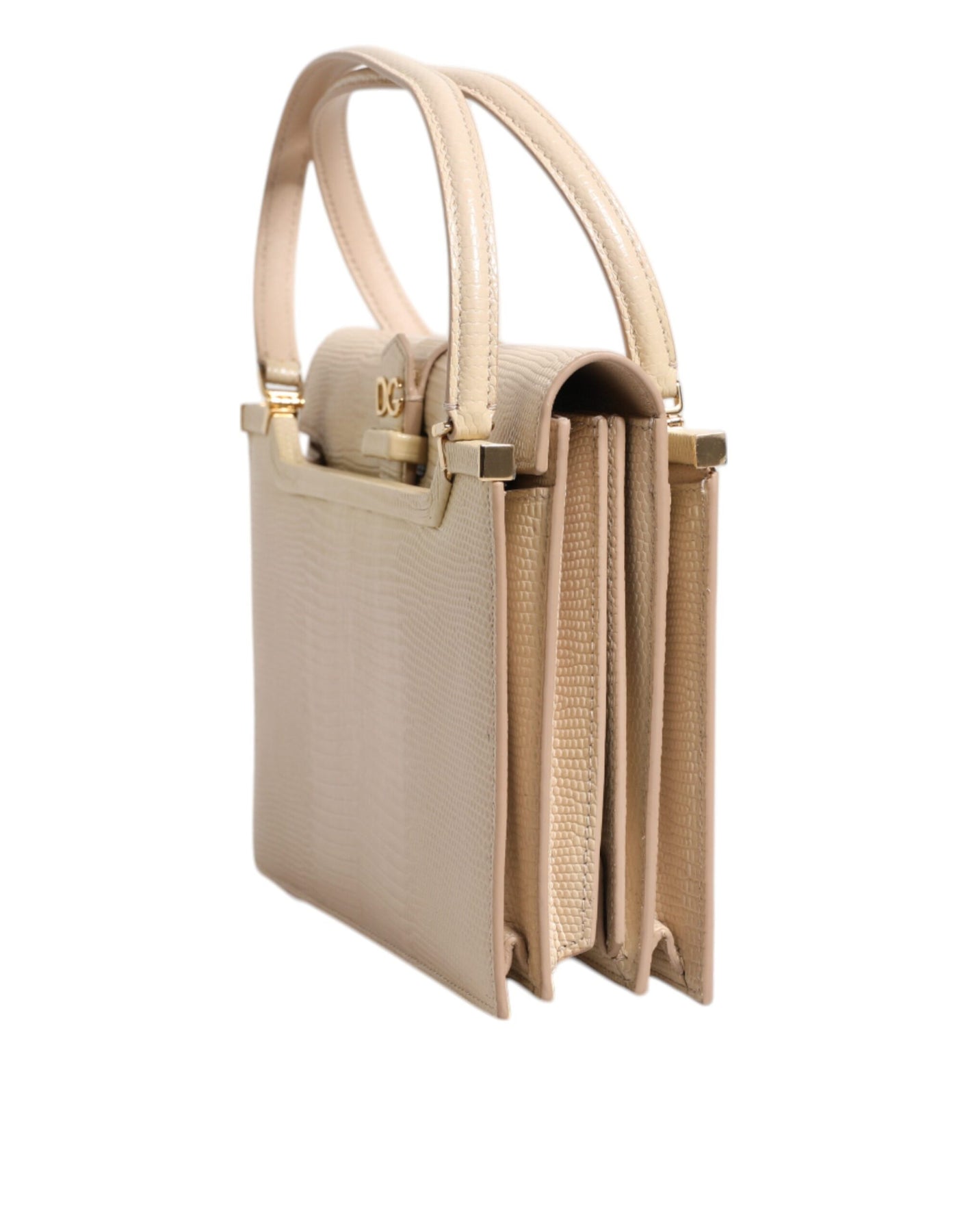 Absolutely stunning, 100% Authentic brand new Dolce & Gabbana iguana print calfskin handbag from the Ingrid line. It features the two handles attached to the metal corners and covered in leather, giving structured compartments. Presenting a spacious central folding compartment and two side compartments, also folding, allowing functional use of the space.