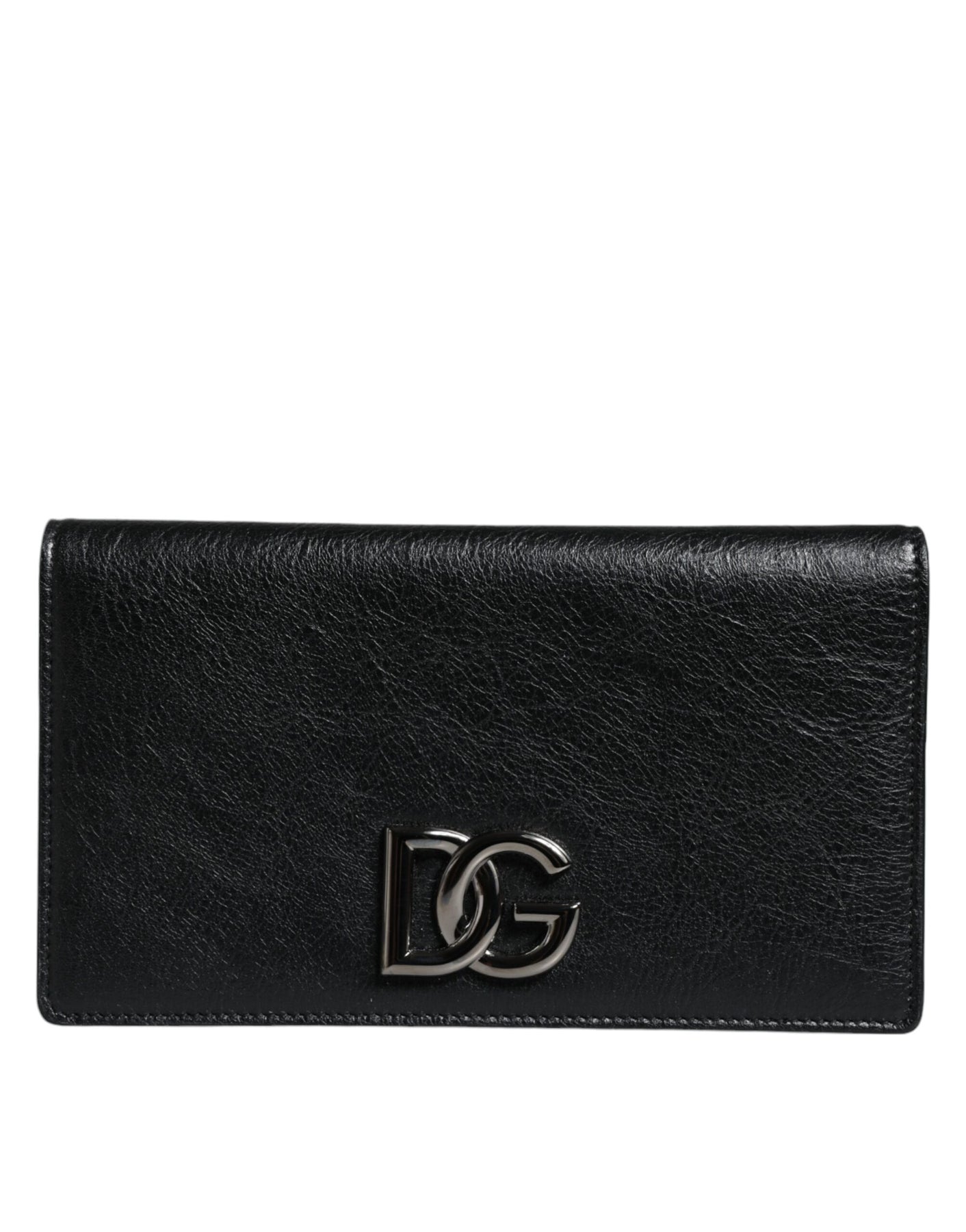 Dolce & Gabbana Black Leather DG Logo Bifold Card Slot Crossbody Bag