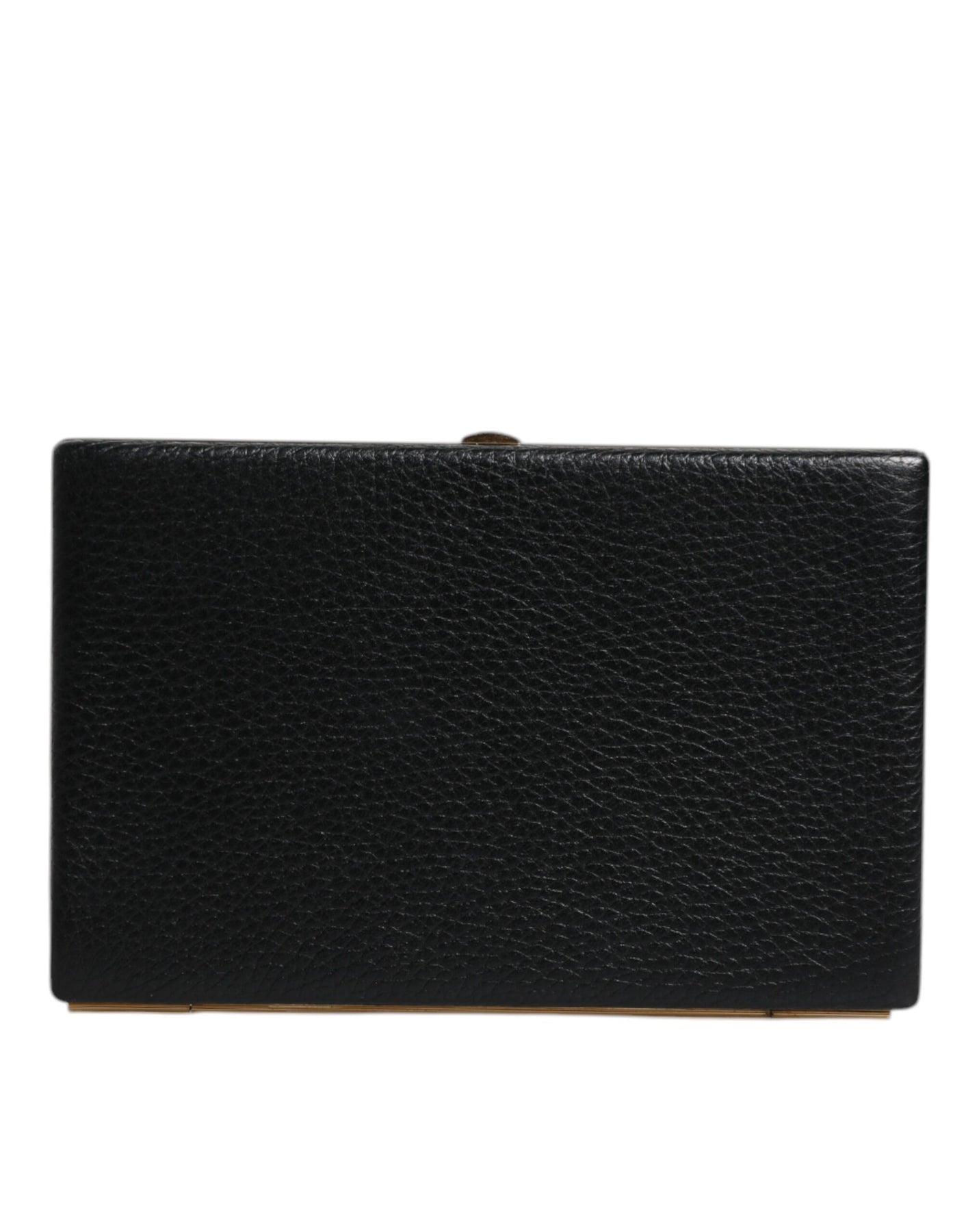Dolce & Gabbana Black Leather Gold Frame Clutch Evening Party Purse Bag