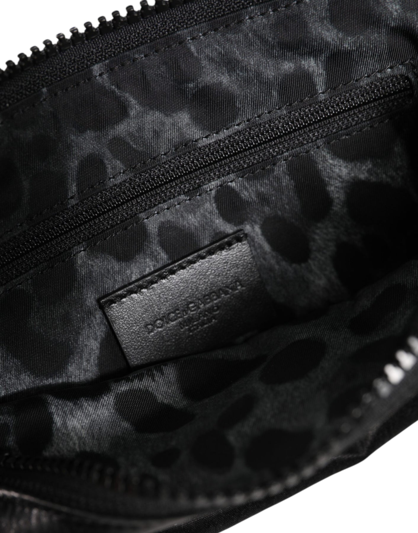 Dolce & Gabbana Black Nylon Logo Plaque Keyring Pouch Clutch Bag
