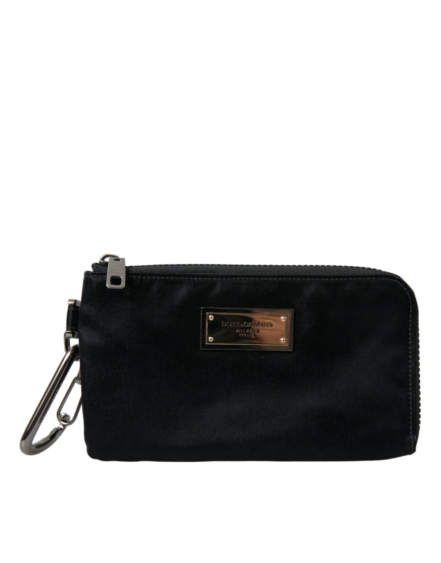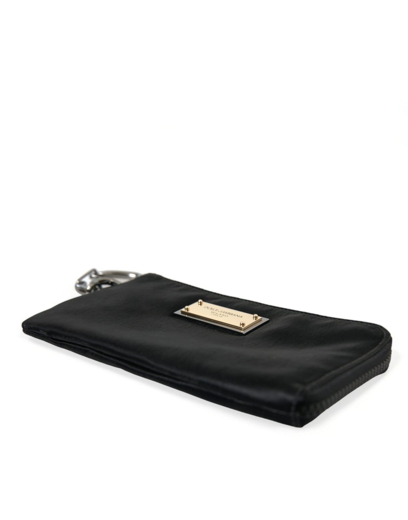Dolce & Gabbana Black Nylon Logo Plaque Keyring Pouch Clutch Bags