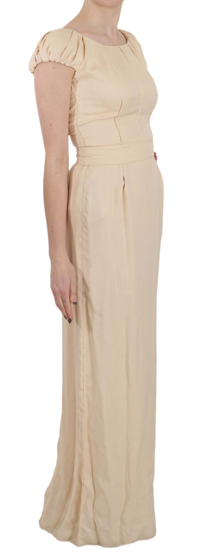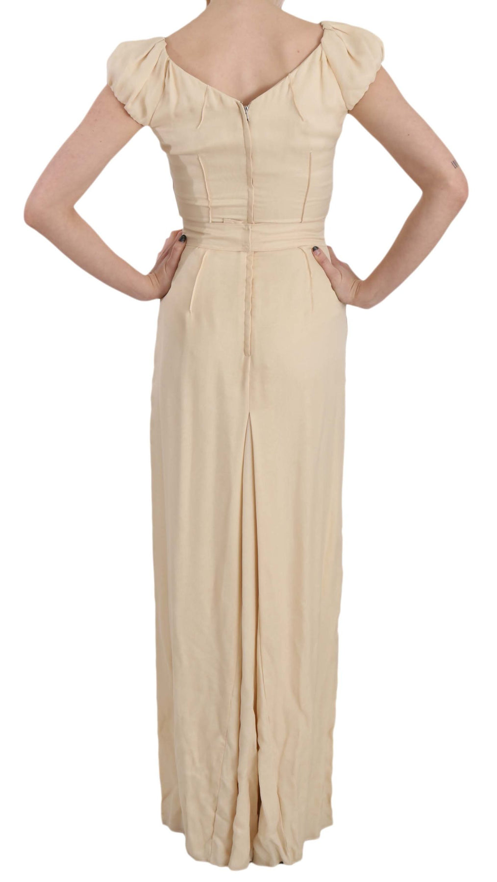 Dolce & Gabbana Beige Silk Column Cap Sleeve Gown Dress