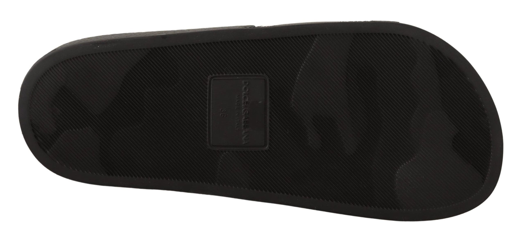 Dolce & Gabbana Black Leather I Love D&G Slides Sandals