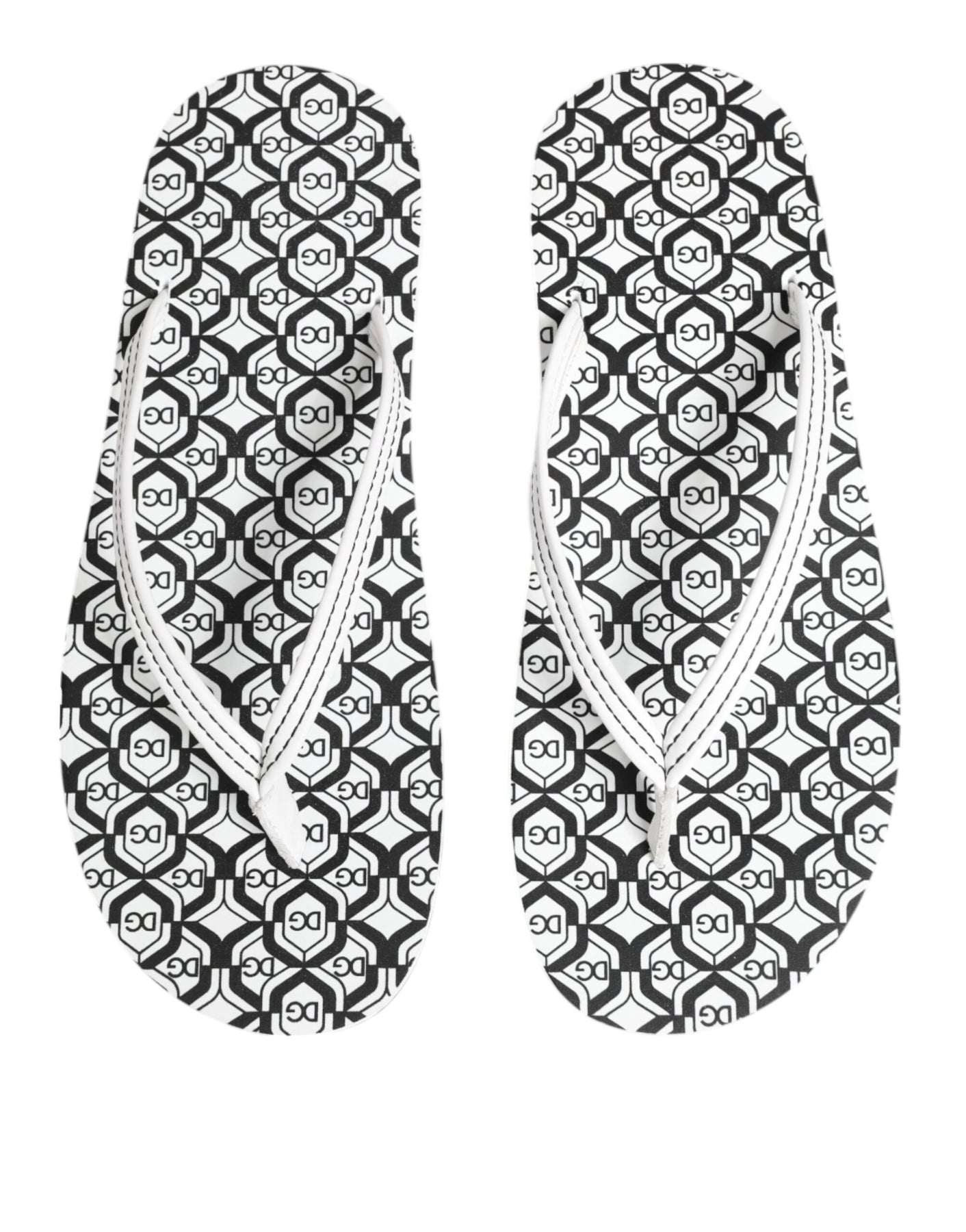 Dolce & Gabbana Black White Logo Beachwear Flats Slipper Shoes