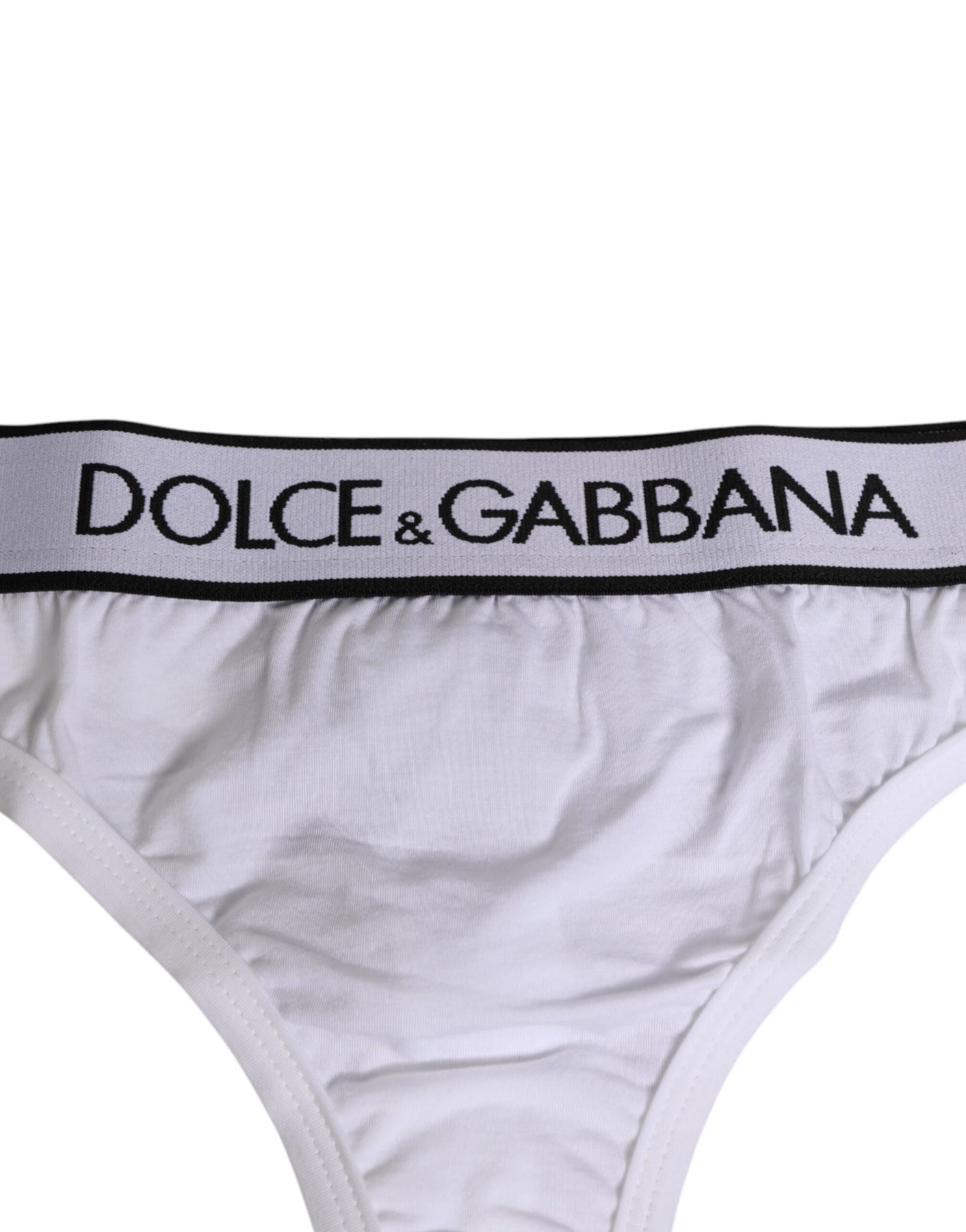 Dolce & Gabbana White Logo Waistband Modal Cotton Thong Underwear