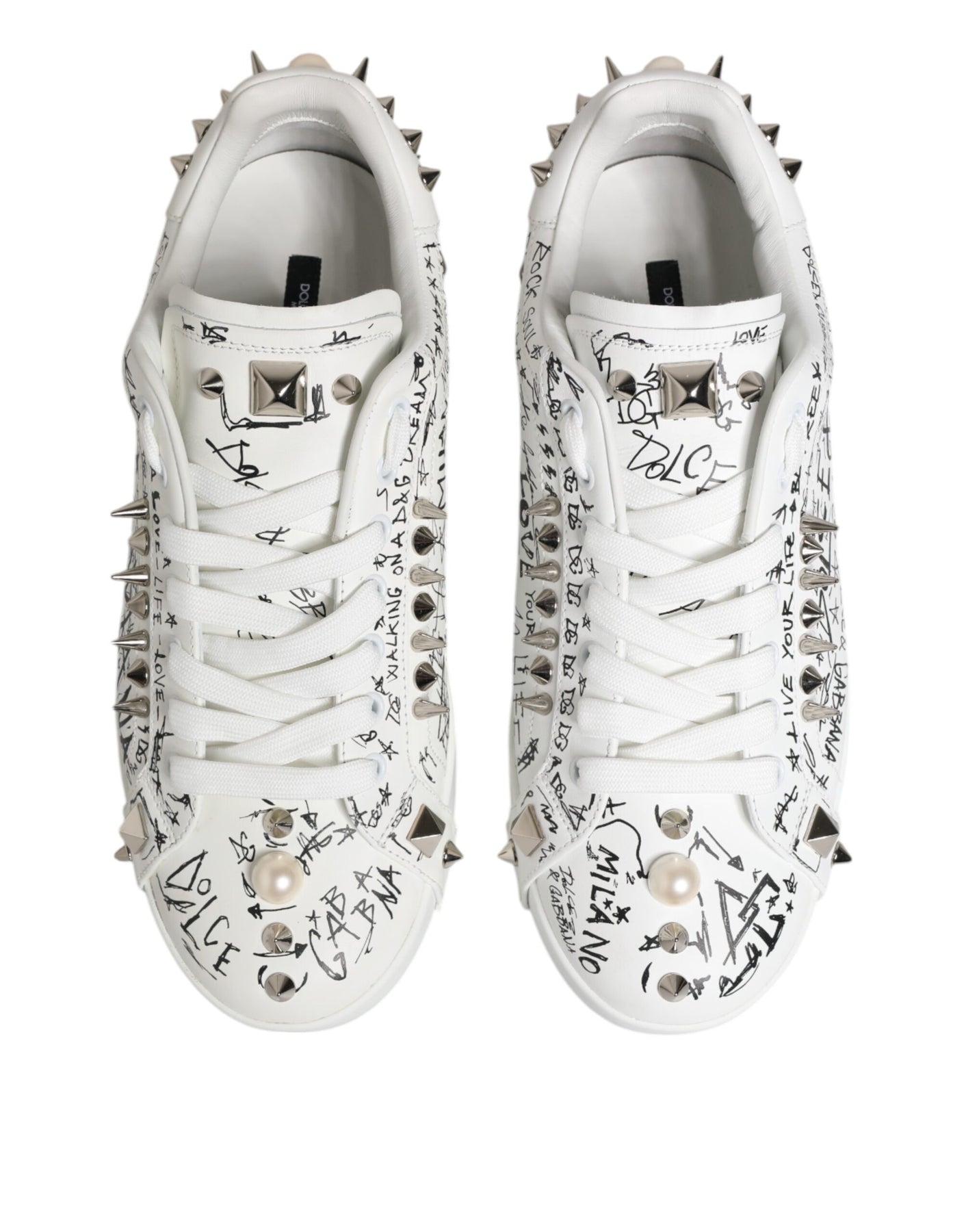 Dolce & Gabbana White Portofino Studded Men Sneakers Shoes