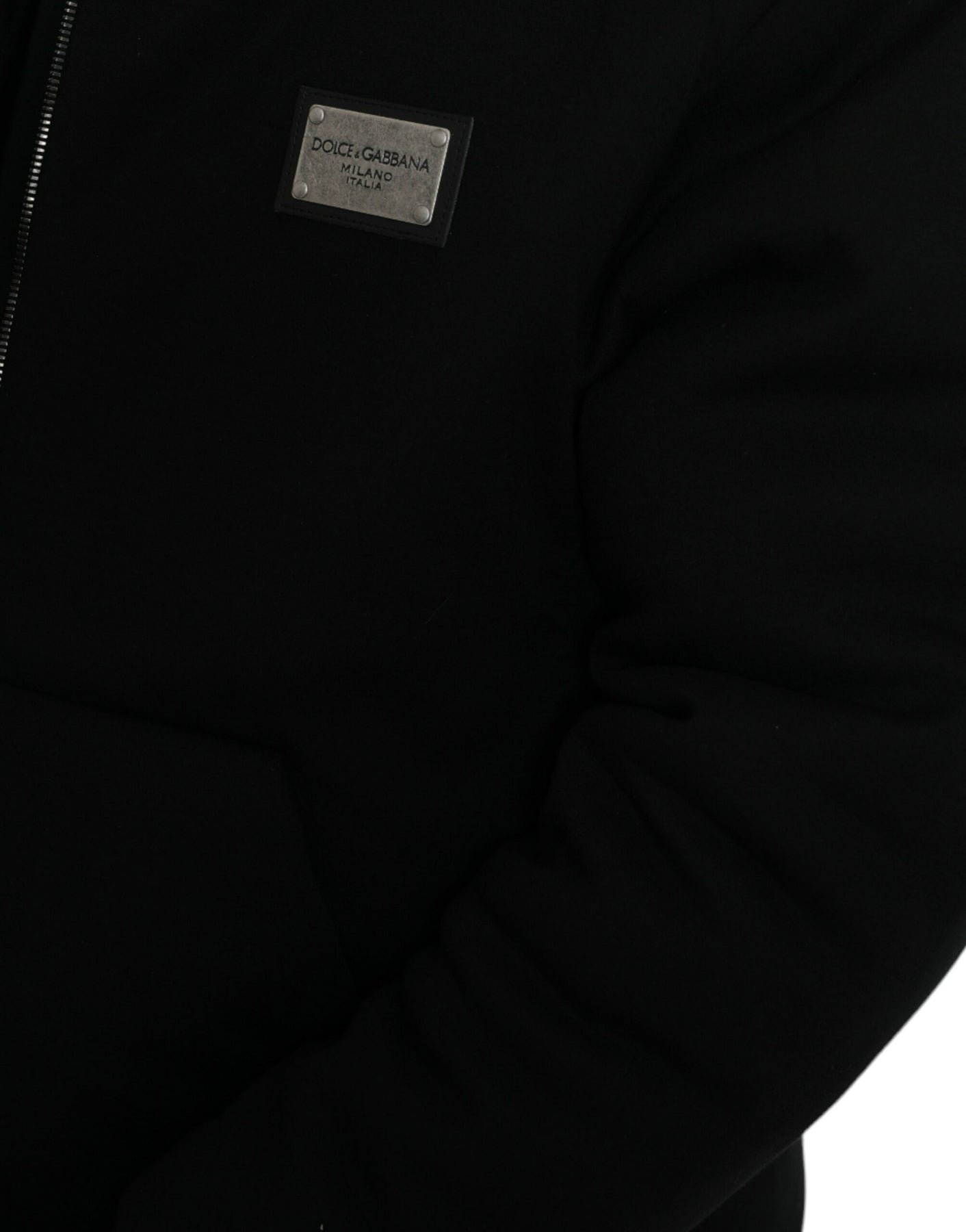Dolce & Gabbana Black Cotton Hooded Logo Bomber Jacket