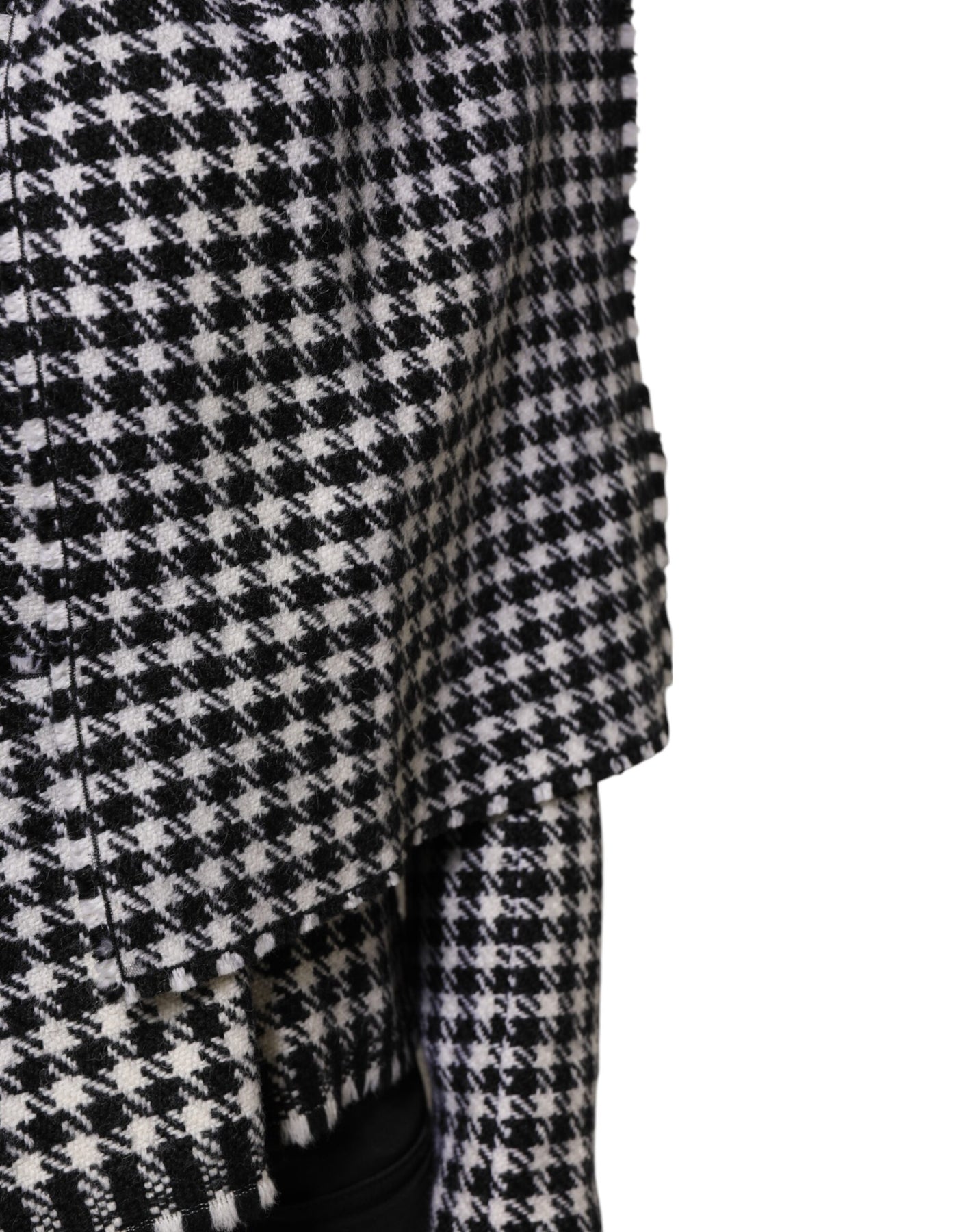 Gorgeous brand new, 100% Authentic Dolce & Gabbana cape is detailed using monochrome patterned wool fabric. It has buttoned closure. Style this stunning cape and look polished.
