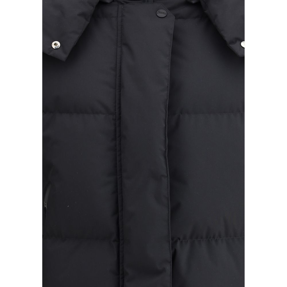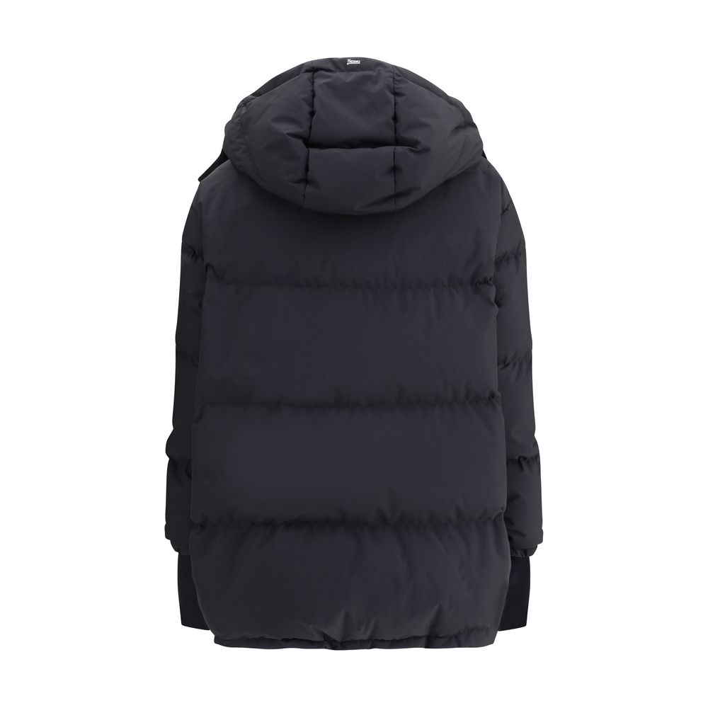 Herno’s Down Jacket features a removable zippered hood and high collar for extra protection from the cold. The front closure combines a double-slider zipper with a snap-button flap for practicality and style. It features two zippered front welt pockets, elastic cuffs with thumb cut-outs, and a quilted, padded design that provides warmth and comfort. Adjustable zippered side slits add versatility and a customized fit.