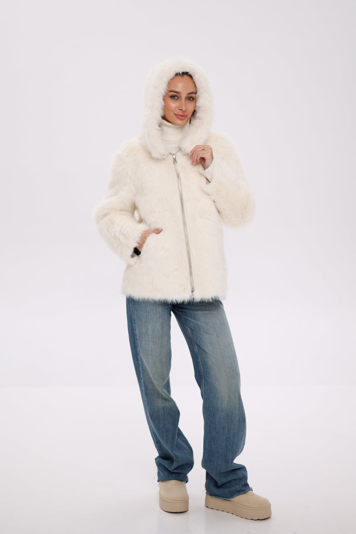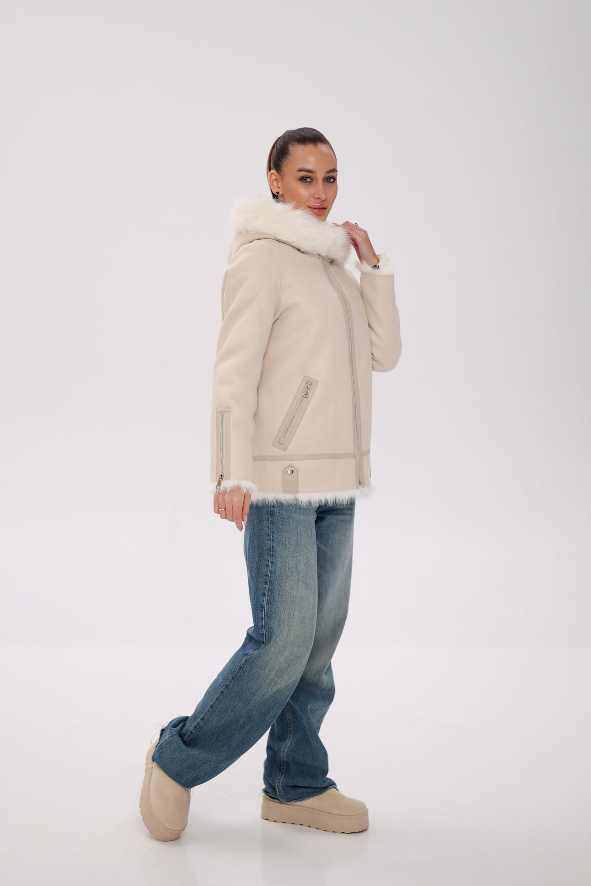 This hip-length reversible jacket combines eco-suede and wool blend, offering two looks in one. The eco-suede provides a sleek soft-to-the-touch finish, while the cozy layer of wool blend adds warmth and texture. With its versatile design, this jacket is perfect for transitioning between casual and sophisticated styles, making it a practical yet luxurious addition to any wardrobe.