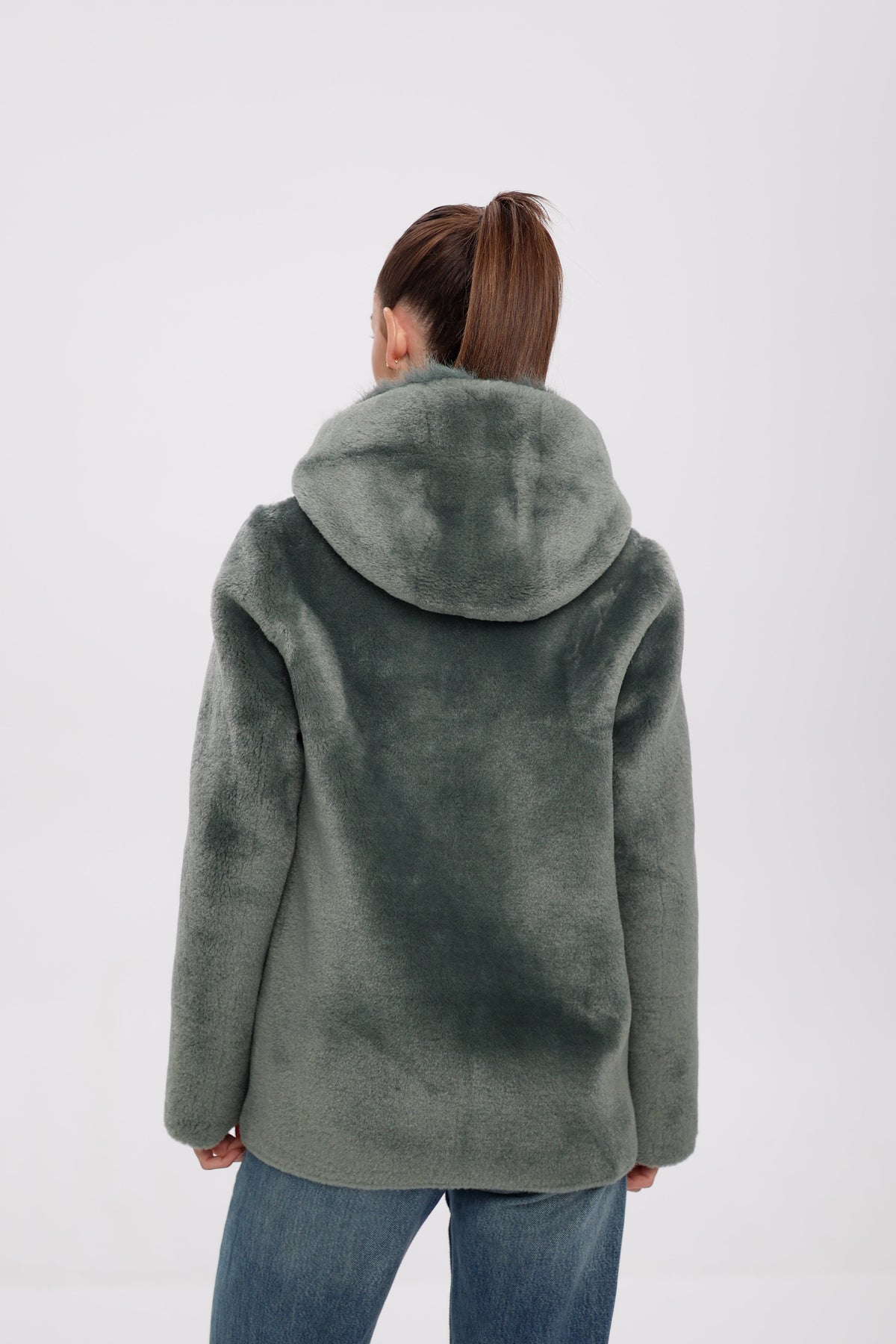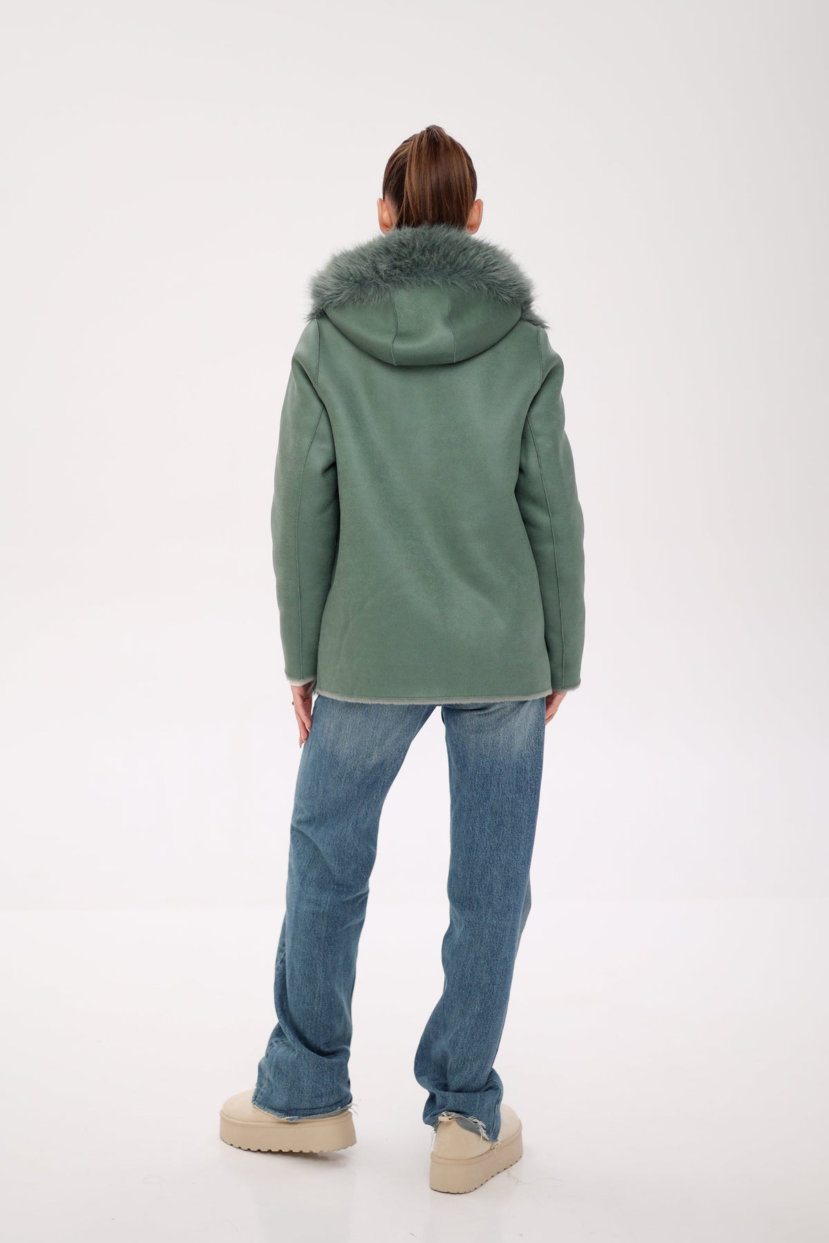 This hip-length reversible jacket combines eco-suede and wool blend, offering two looks in one. The eco-suede provides a sleek soft-to-the-touch finish, while the cozy layer of wool blend adds warmth and texture. With its versatile design, this jacket is perfect for transitioning between casual and sophisticated styles, making it a practical yet luxurious addition to any wardrobe.