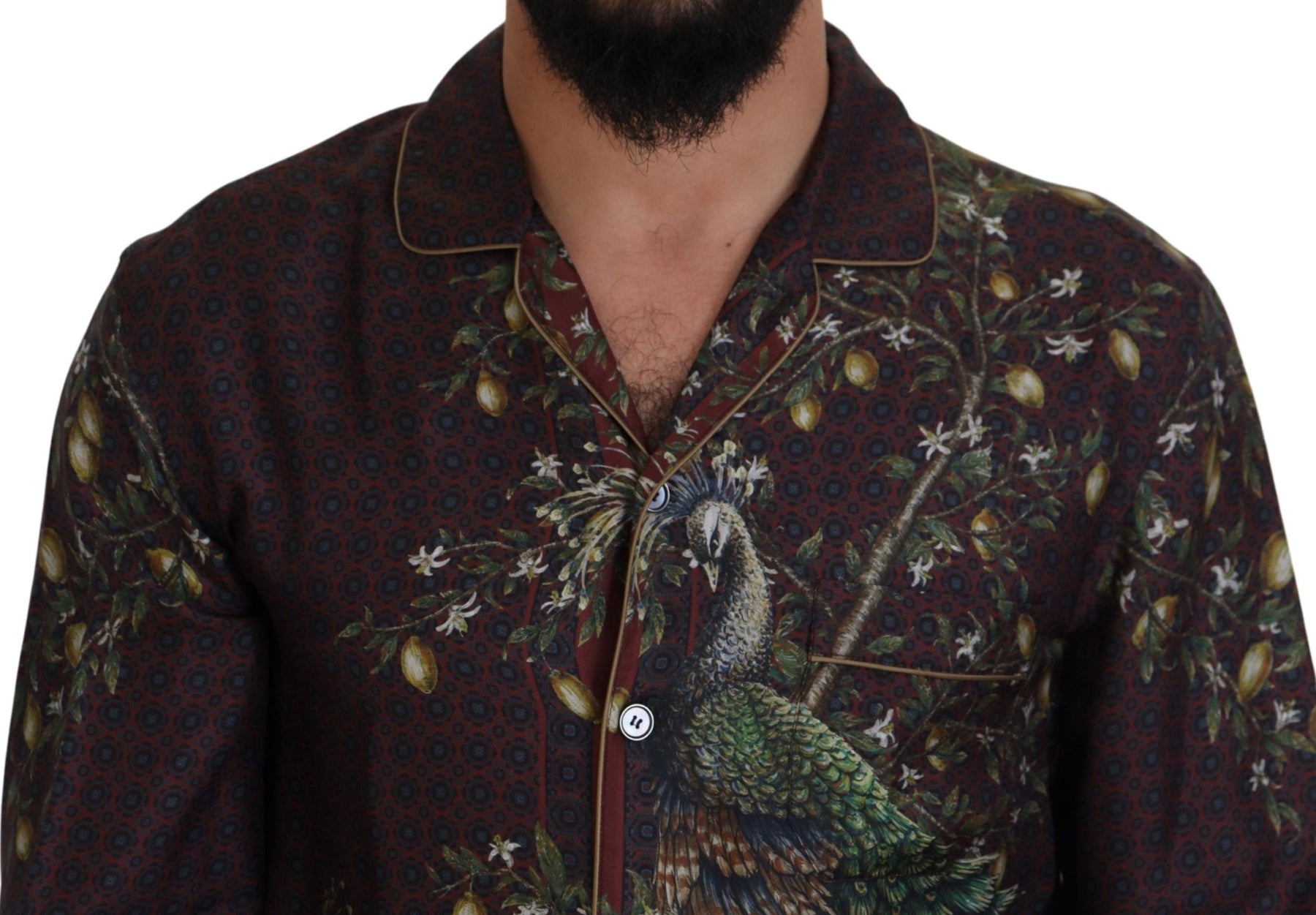 Dolce & Gabbana Bordeaux Ostrich Silk Satin Casual Mens Shirt