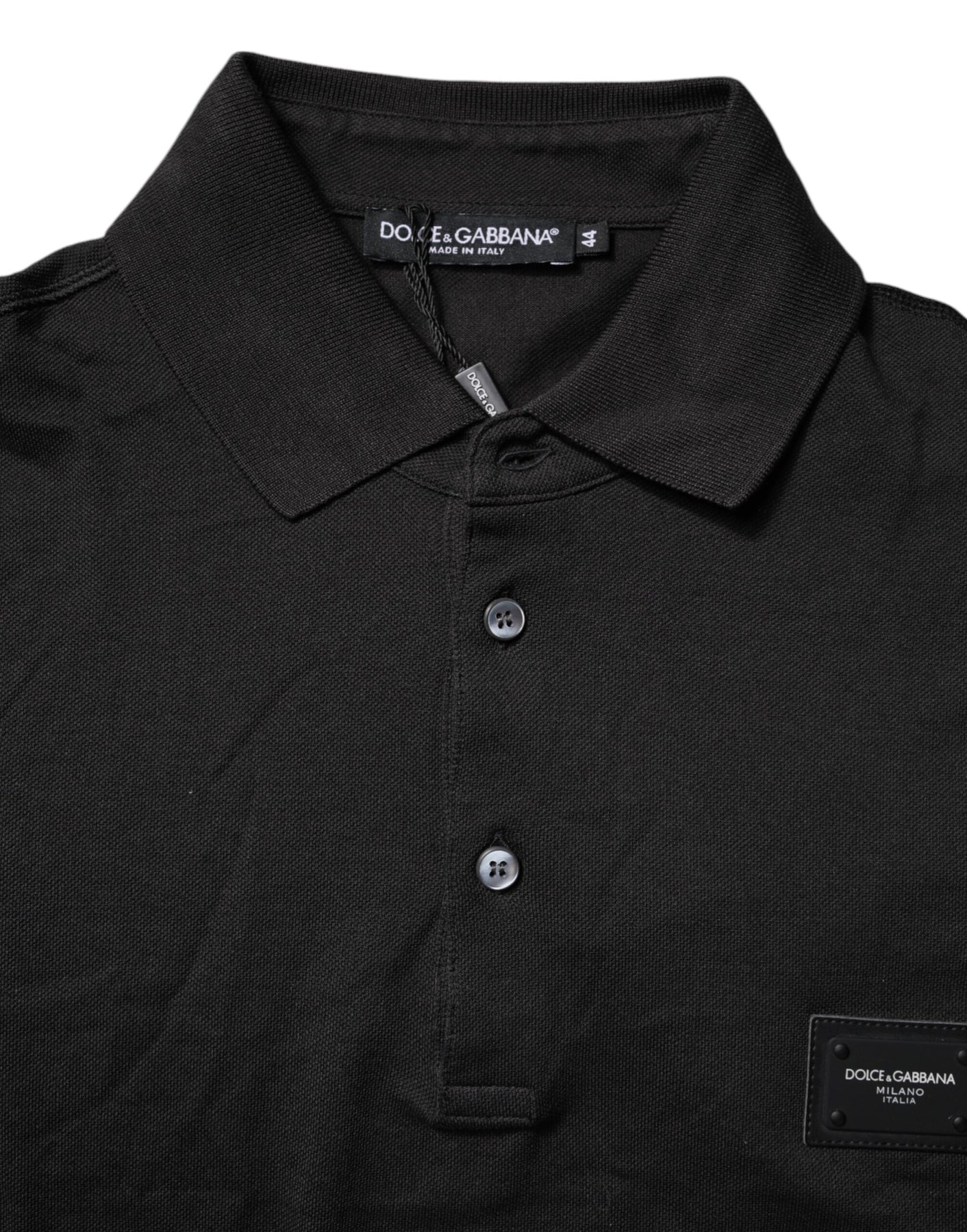 Dolce & Gabbana Dark Gray Logo Plaque Cotton Men Polo Shirt T-shirt