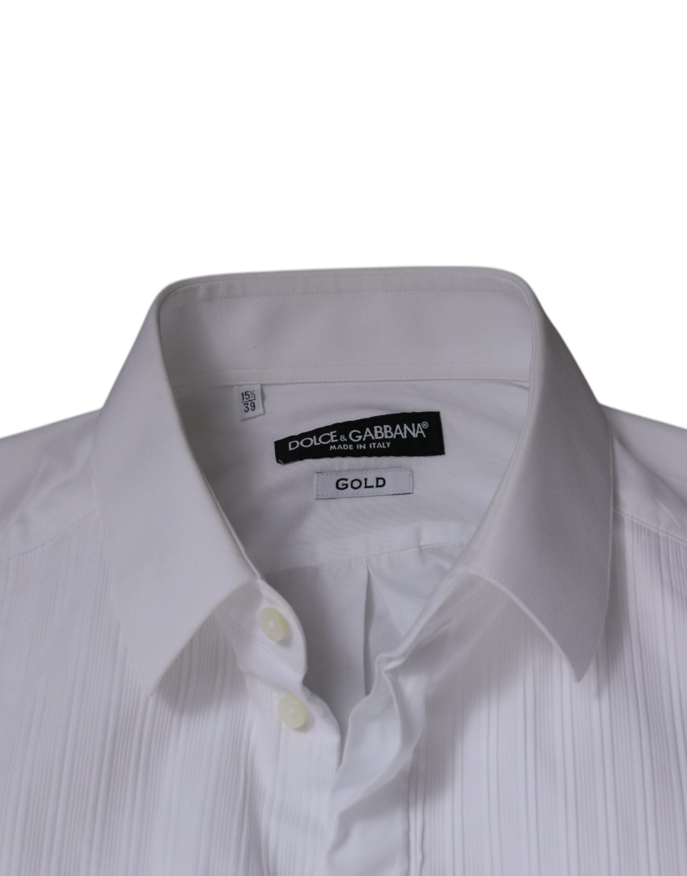 Dolce & Gabbana White Bib Cotton Poplin GOLD Men Formal Shirt