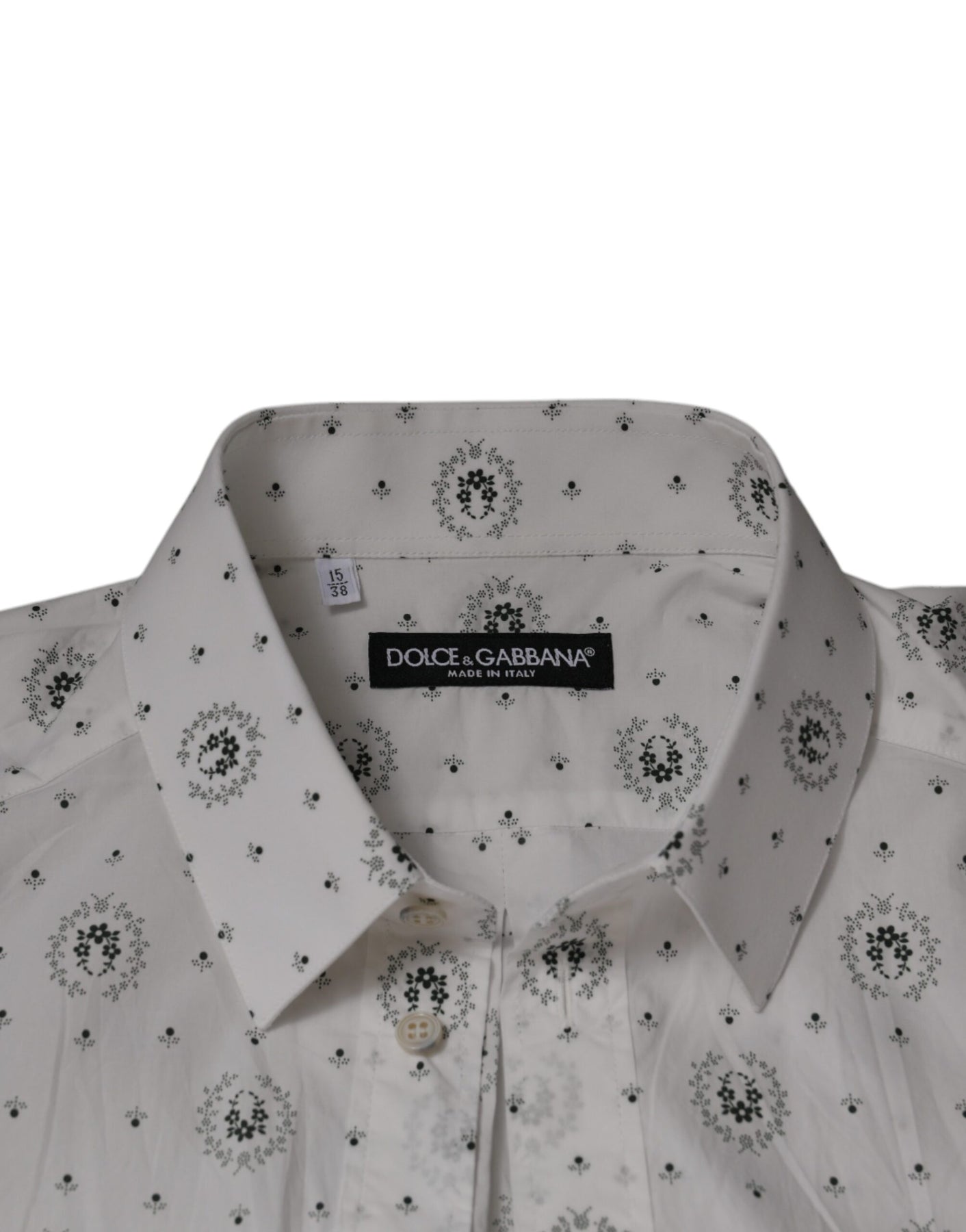 Dolce & Gabbana White Printed Cotton Slim Fit Men Dress Shirt