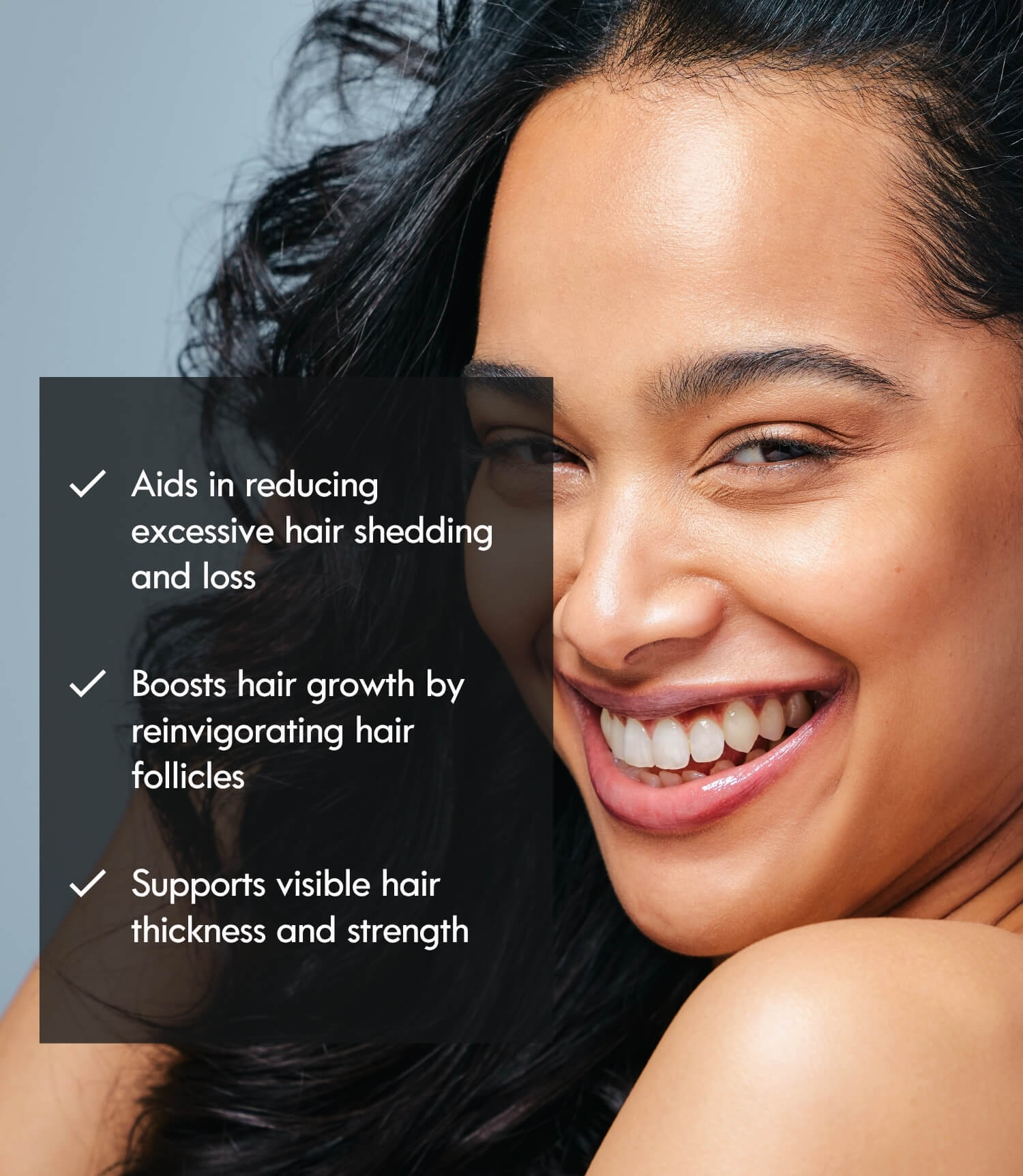 ✔ Boosts hair growth by re-invigorating the hair follicle