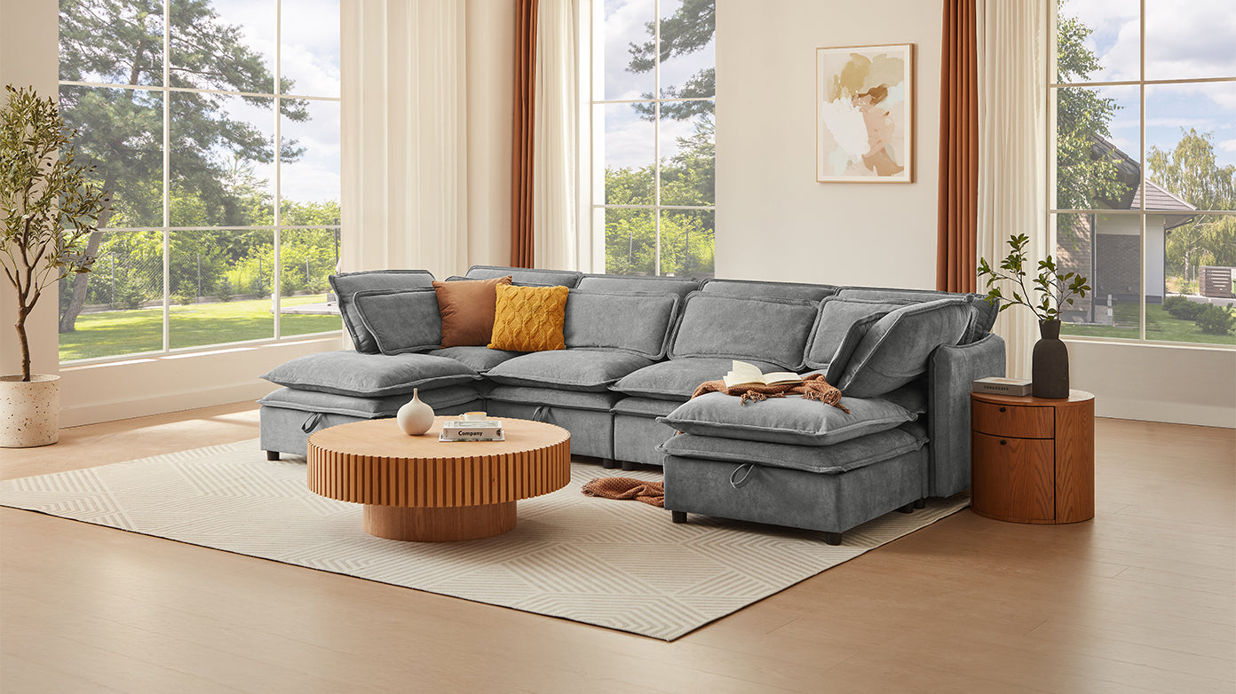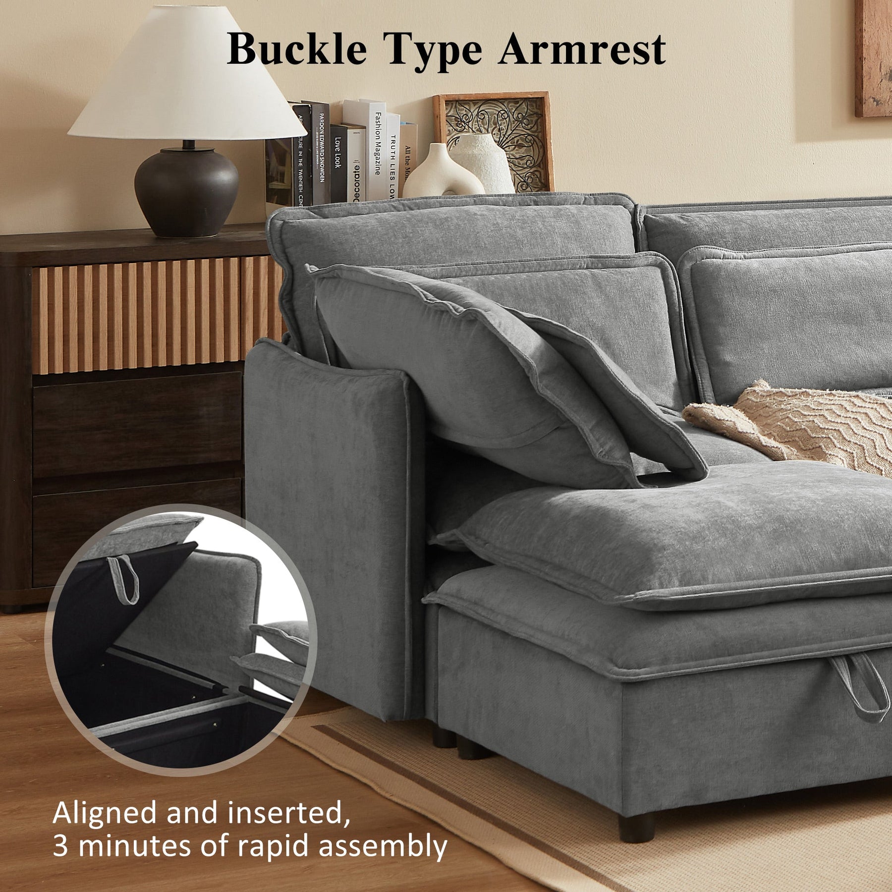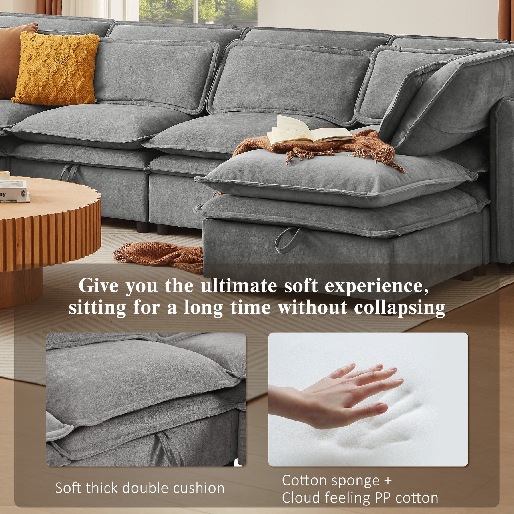 U_Style Double-Layer Cushion Modern Large U-Shaped Modular Sofa, Freely Combinable 6-Seater with Storage Function, Convertible to Sofa Bed, Perfect for Living Rooms, Offices, and Apartments