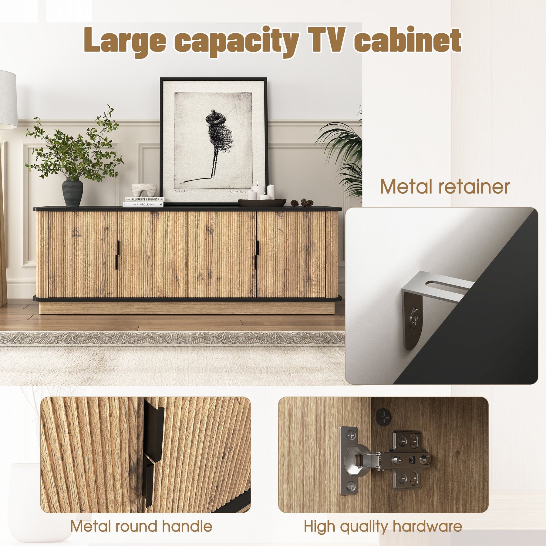 • 【Natural Style Integration】: This natural wood grain four-door MDF TV cabinet brings a warm and stylish atmosphere to your living room with its blend of Nordic and modern minimalist designs.