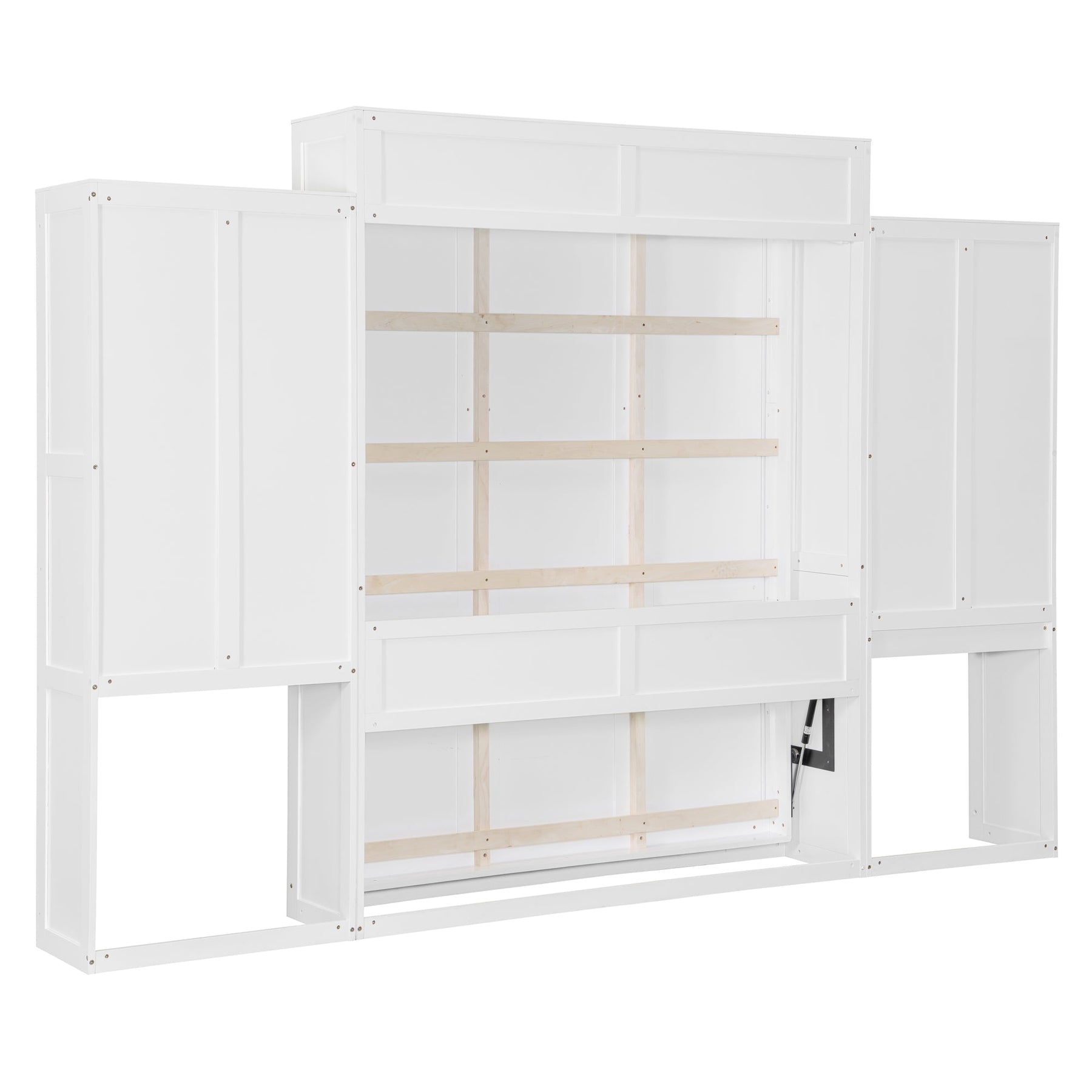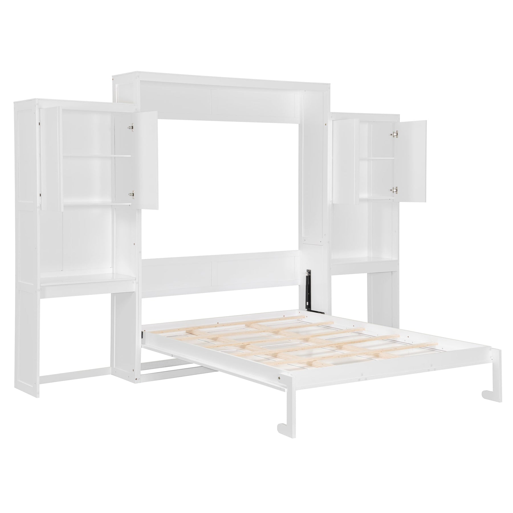 Queen Size Murphy Bed with Desk, Vanity and Cabinets, White