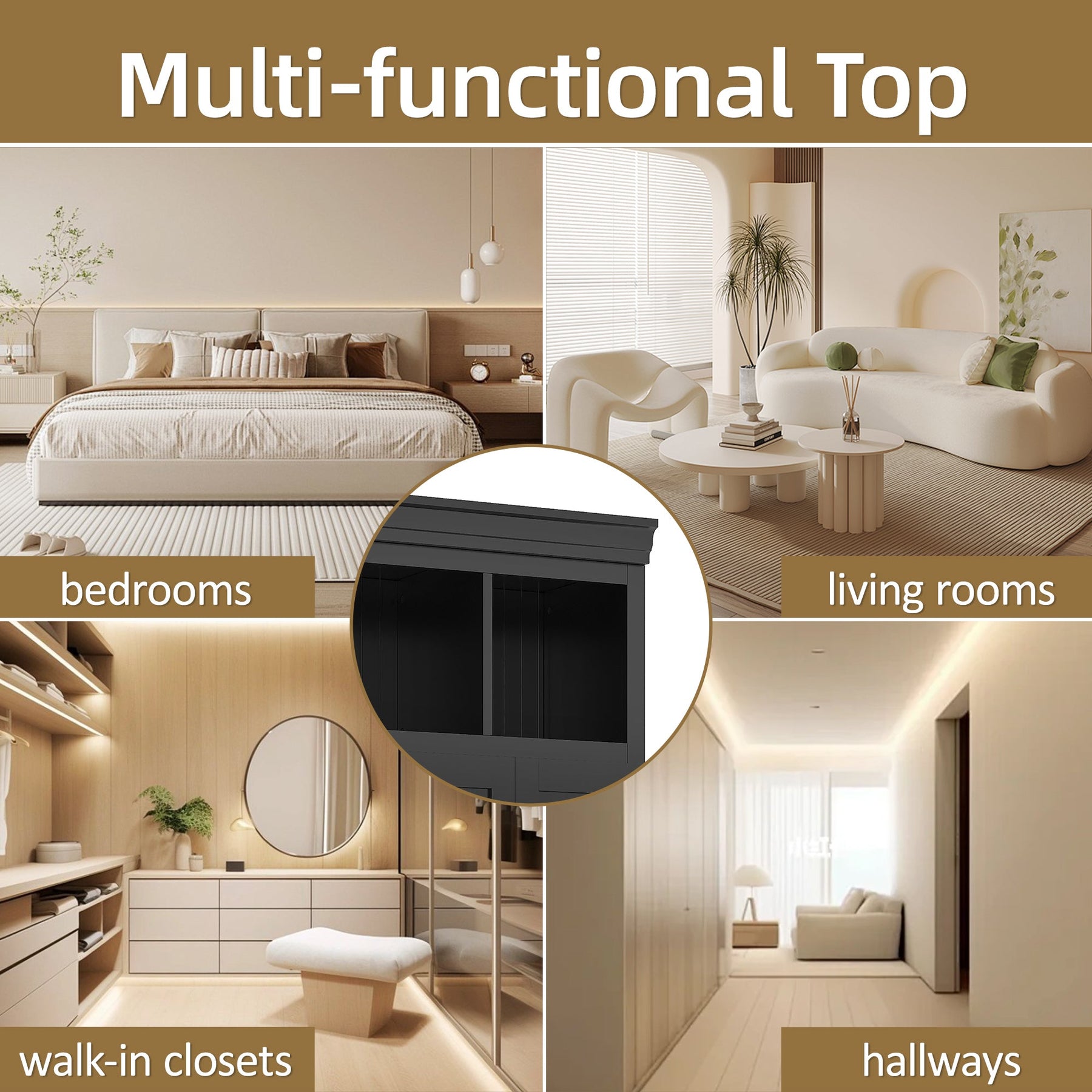 This hall tree is not just a functional storage solution; it is also a stylish and versatile piece that can enhance the decor of various spaces in your home. Its elegant design makes it suitable for a range of environments, from the entryway where it can serve as a catch-all for hats, coats, and bags, to the living room where it can serve as both a storage unit and a display piece. The wardrobe is also ideal for bedrooms or walk-in closets, offering a sleek and modern solution for organizing clothing and accessories. Thanks to its size and design, it can easily blend into both contemporary and traditional settings. Overall, this large hall tree is an exceptional piece that combines both style and function. Whether used for storage, display, or both, its design elements, adjustable features, and sturdy construction ensure that it will serve you well for years to come.