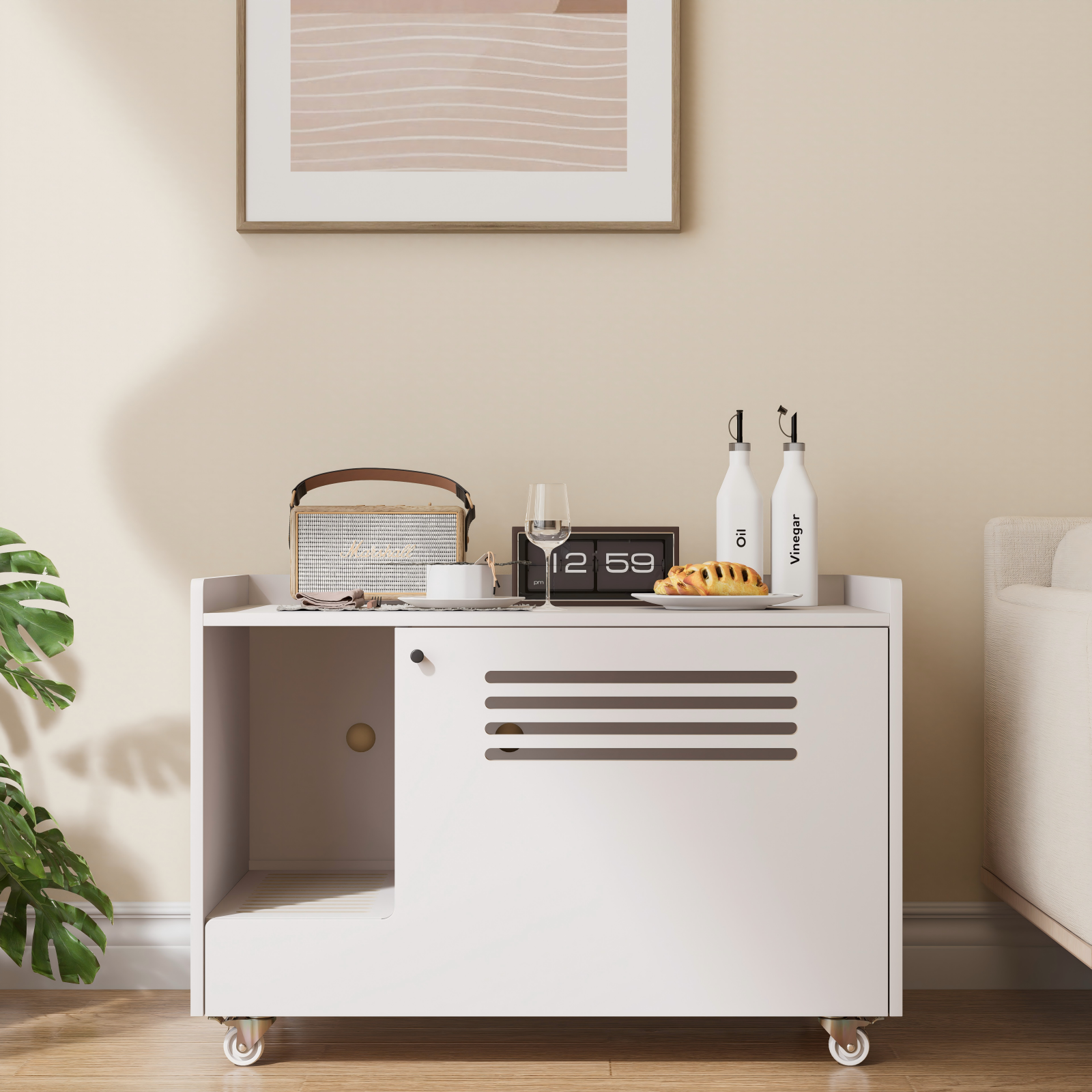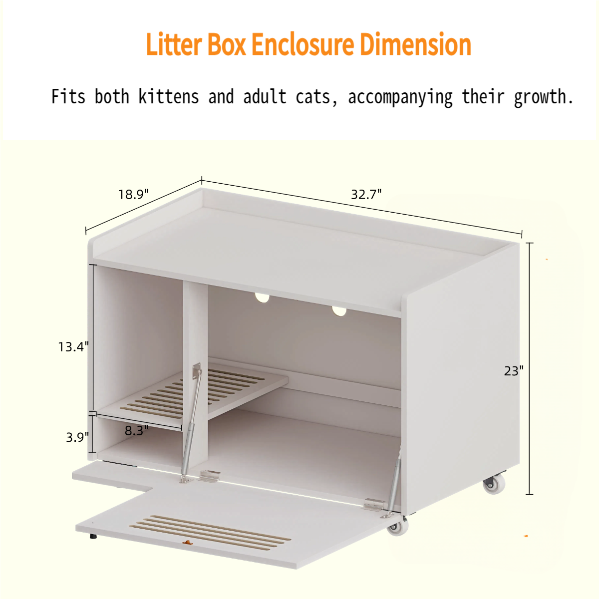 • 2.The exclusive design: The bottom is equipped with silent wheels, which can be easily pushed and pulled to any corner. No need to carry it laboriously, suitable for your home layout and cleaning needs.The cat door can be opened and closed to increase the privacy of the cat. Close the door to block cat litter, and open the door to facilitate cleaning of the litter box enclosure.
