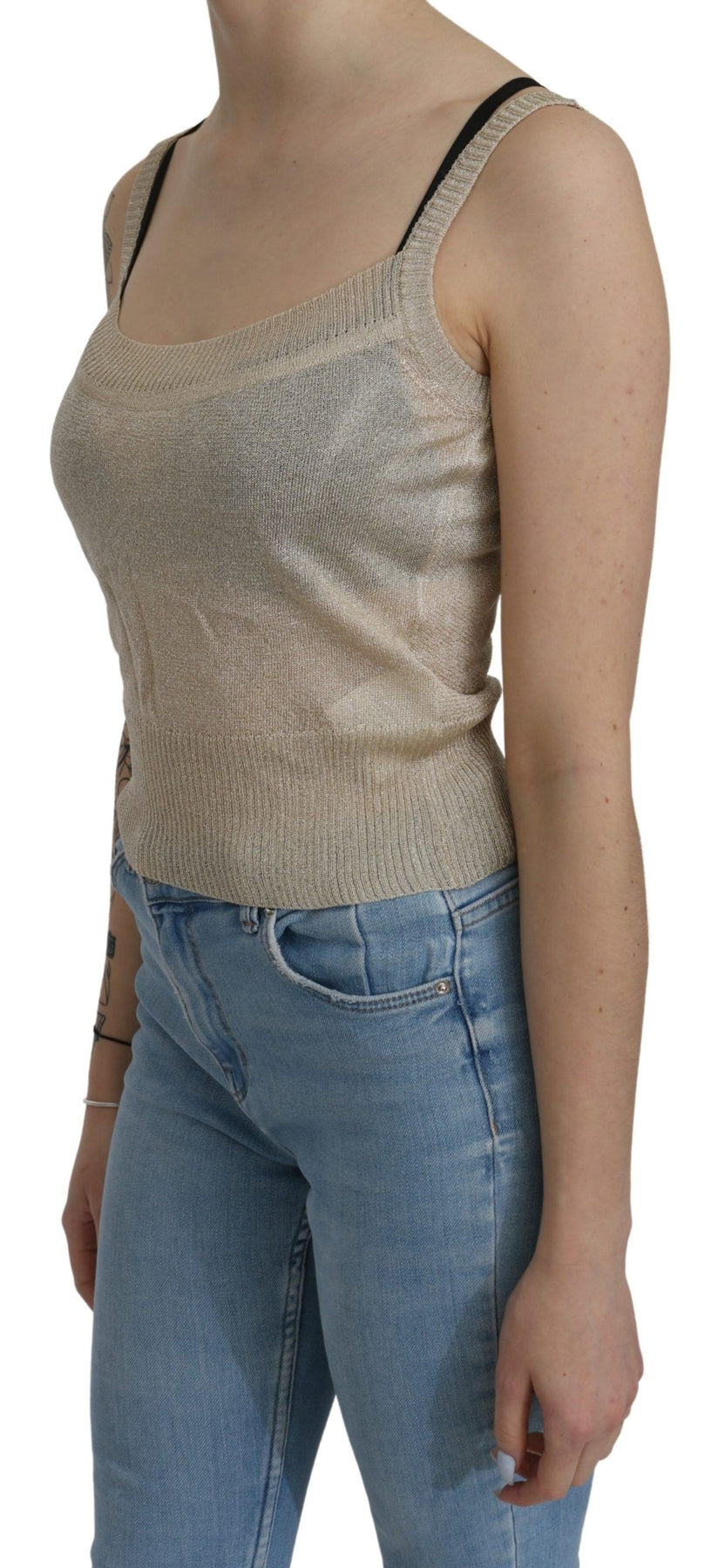 BYBLOS Beige Sleeveless Spaghetti Strap Tank See Through Top