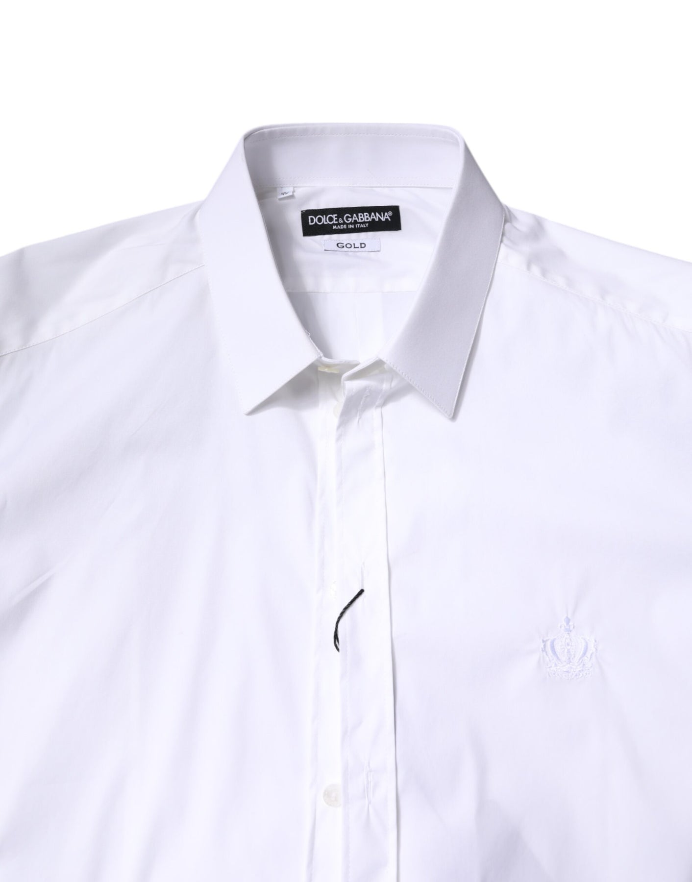 Dolce & Gabbana White Cotton Collared GOLD FormalDress Shirt