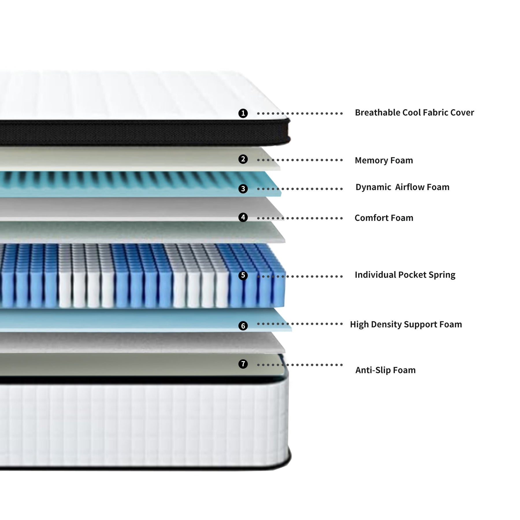 • Anti-Fire Layer , providing safe sleeping environment.