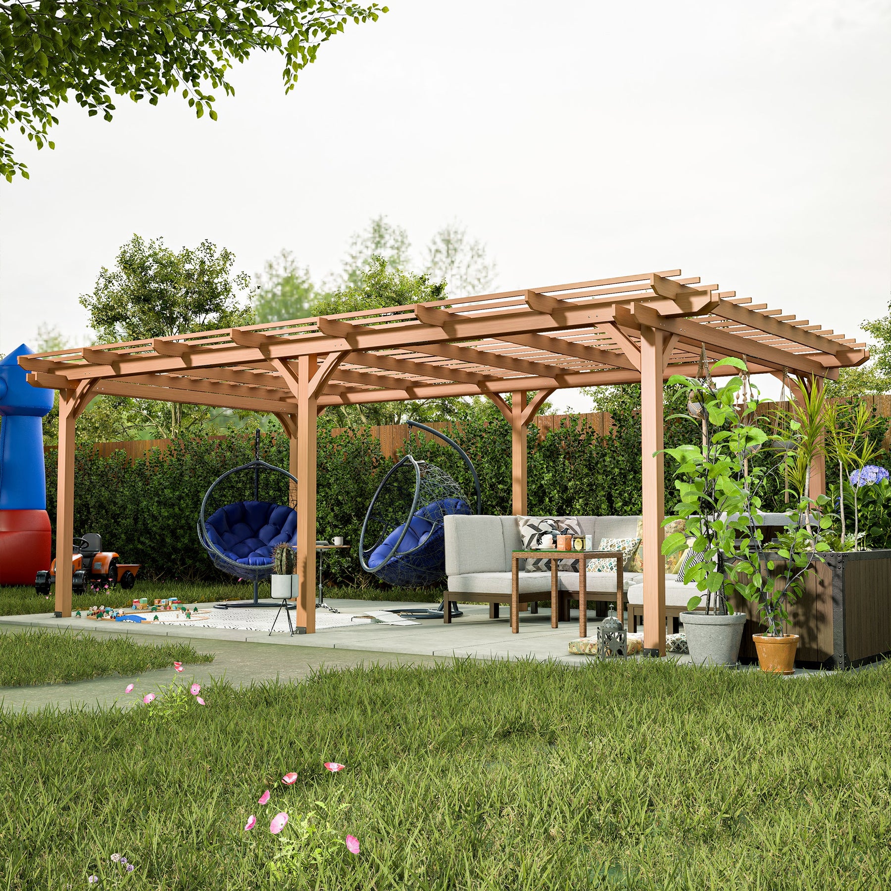 12' x 16' Outdoor Gazebo Wooden Grape pergola for Climbing Plant Support, Garden, Terrace, Backyard, Deck, Brown