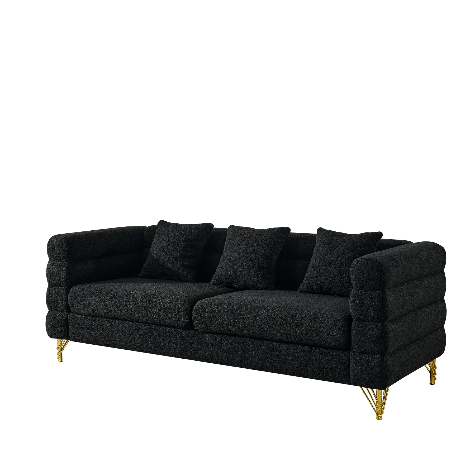 • DURABLE: The sofa is supported by solid wood frame and sturdy gold polished metal legs, this modern three seater living room sofa is strong and durable. Each seat can easily hold up to 250 pounds, making it ideal for three people to relax.