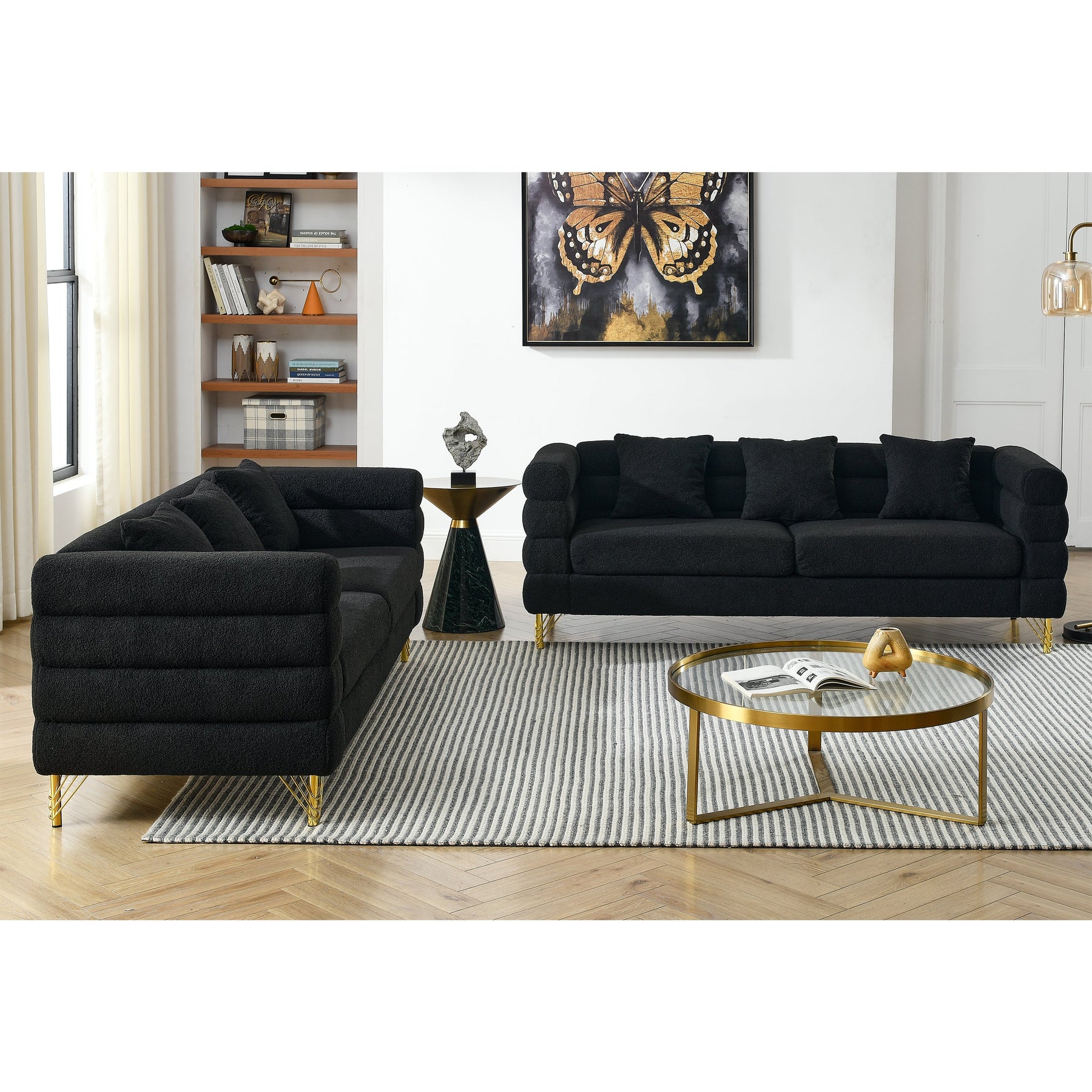 3-seater + 3-seater Combination sofa.BLACK teddy