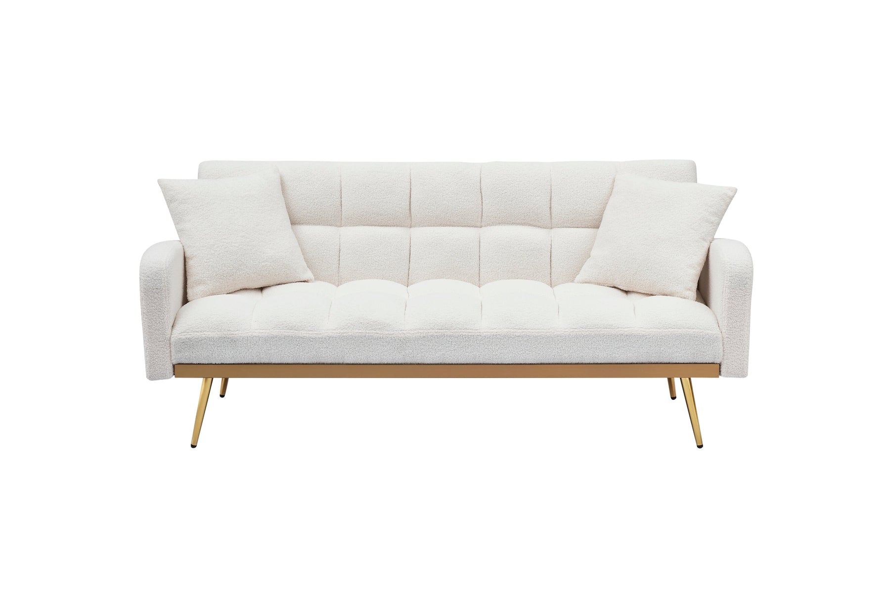 69 Inch Sofa Bed Beige with Adjustable Teddy Sofa for Small Space Living Room and Bedroom