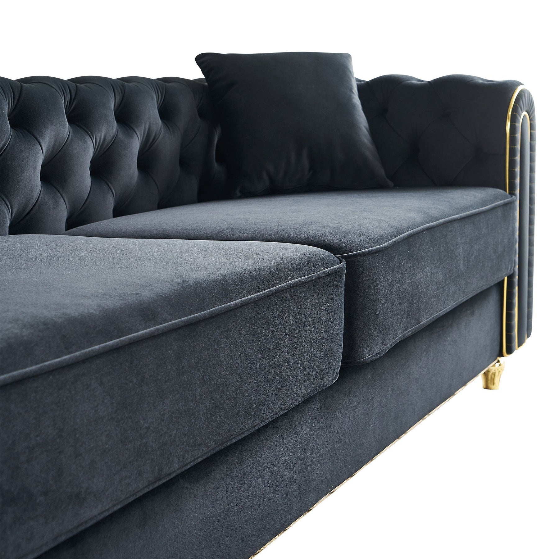 86'' W Luxury Modern Tufted Sofa with 2pcs of toss pillows for Living Room ,Bedroom,Black Color