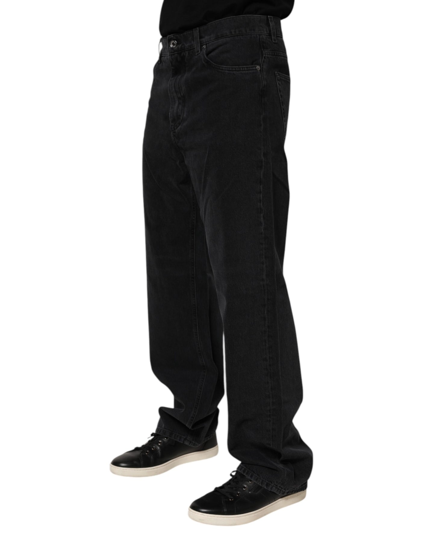 Dolce & Gabbana Black Cotton Logo Men Mid Waist Denim Jeans