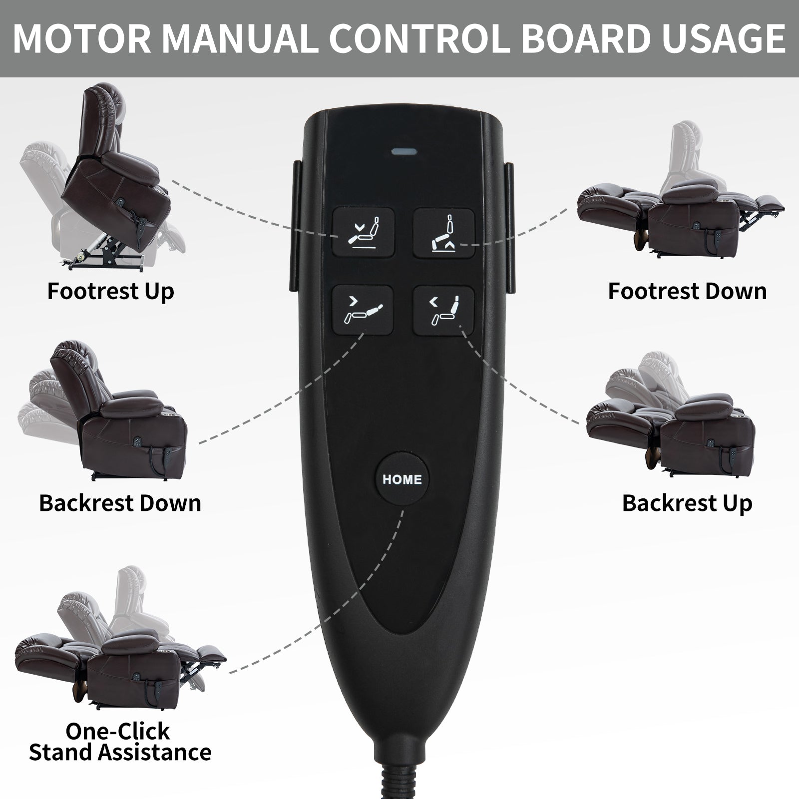 • DUAL MOTOR POWER LIFT RECLINER CHAIR - You can press the buttons of the power-remote to control the lift or recline of the recliner chair, which means you can get any position you want, whether it's reclining 180 degrees or lifting. The lift chair is powered by electric dual motor mechanism, so it can recline nearly 180 degrees.
