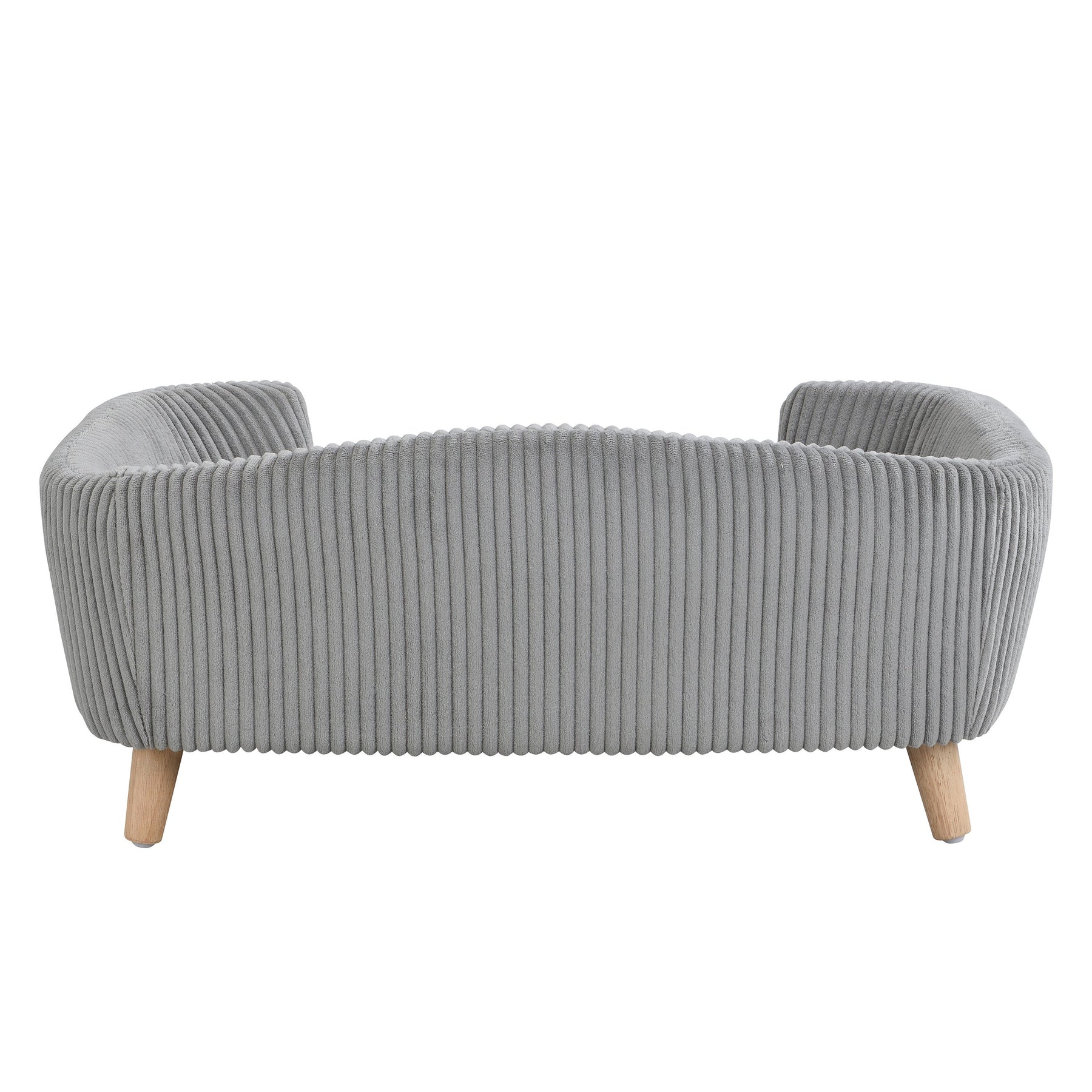Elevated Dog Bed Frame for Small Dog, Corduroy Pet Couch Bed with Rubber Wood Legs and Supportive Foam, Gray, Easy Assembly