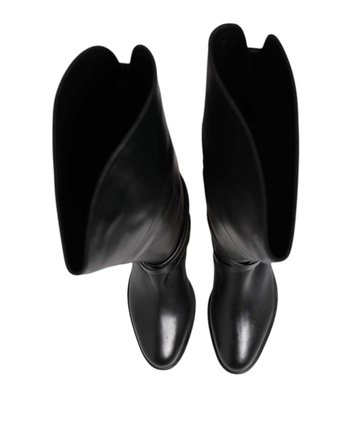 Elisabetta Franchi Black Leather Buckled High Boots Shoes