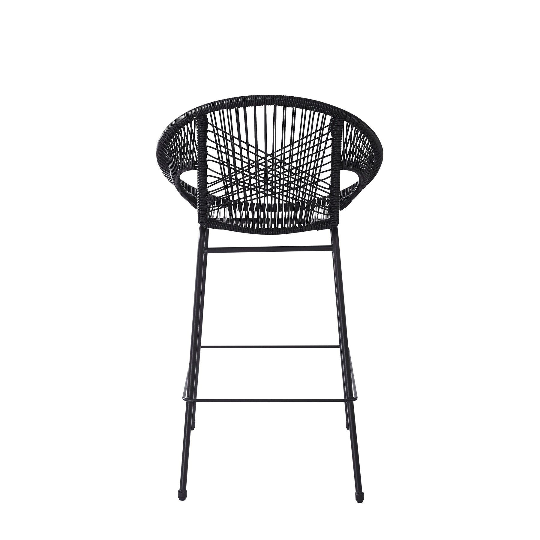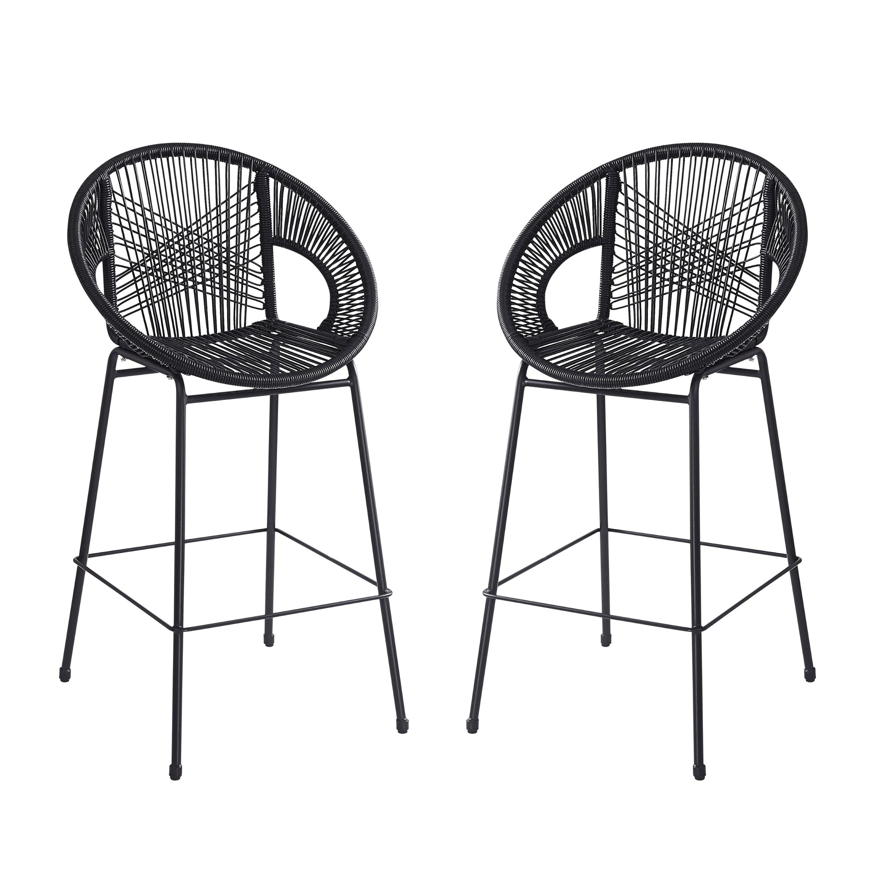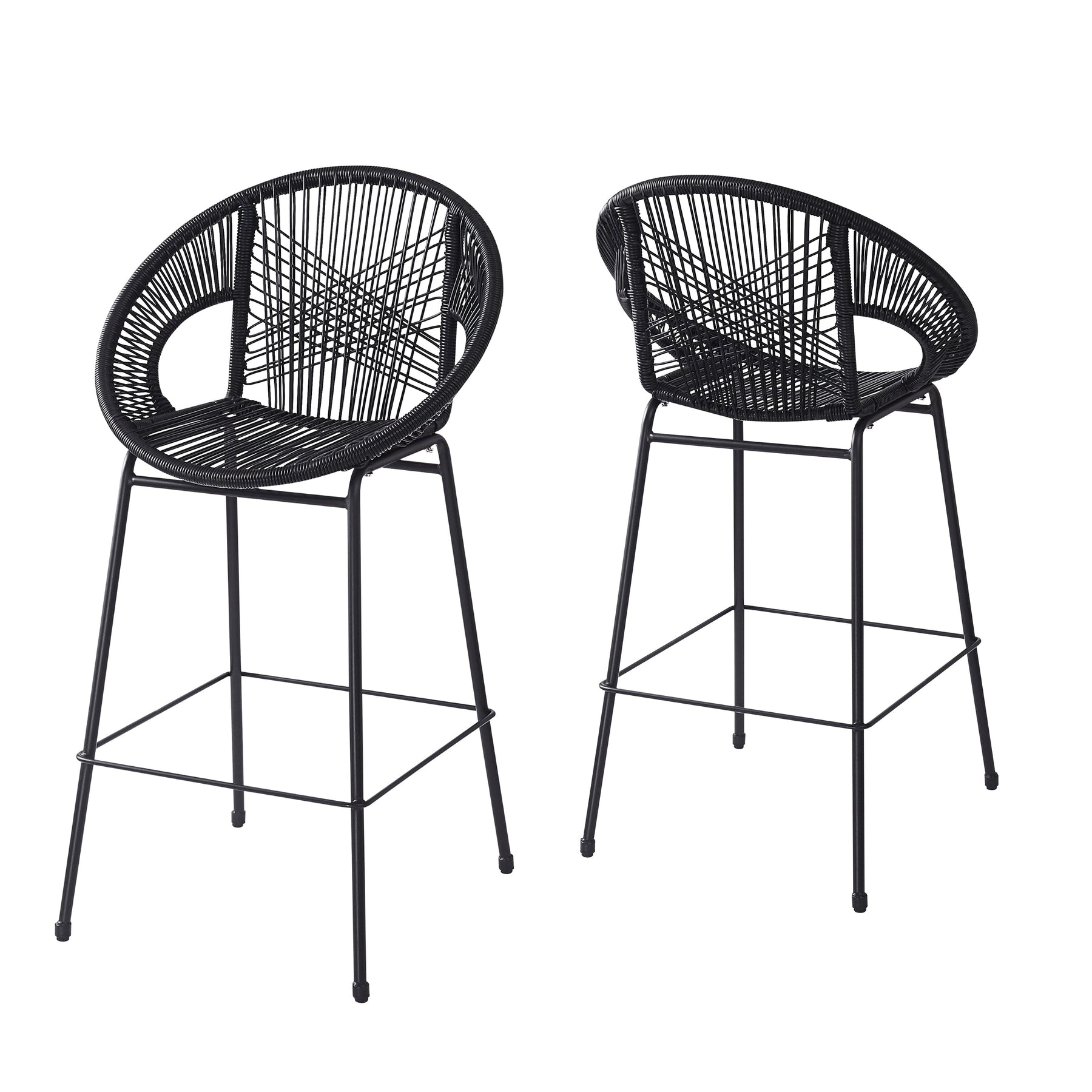 Ferrara Outdoor Patio Barstool Set of 2, Black Faux Wicker PE Rattan with Iron Frame